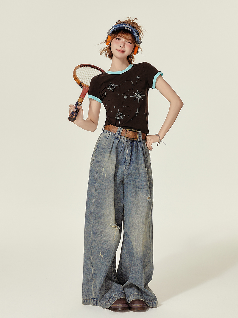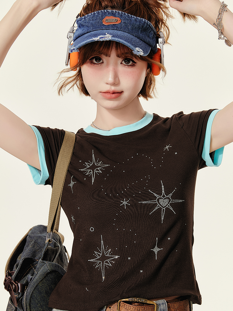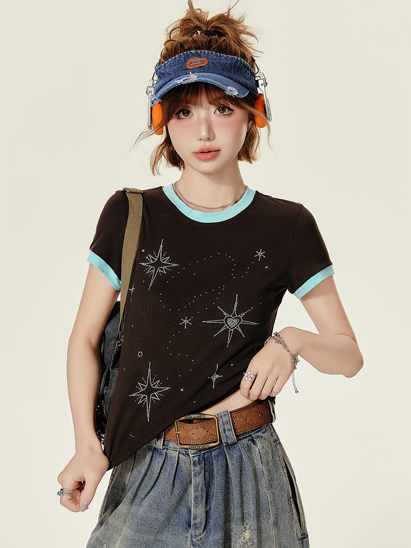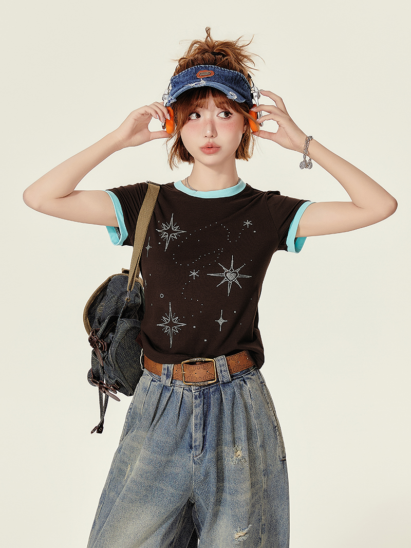 Concert Outfit Retro Brown Neck Short Sleeve T- Shirt Wome – Concert Outfit