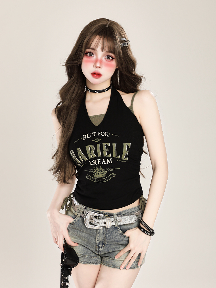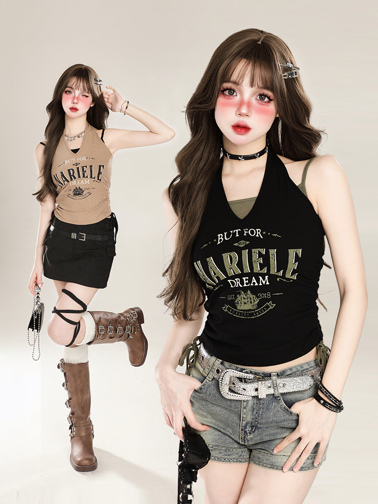 Elevate your summer wardrobe with our American Retro Halter Crop Top, designed for the modern woman who loves Y2K fashion. This chic top features a flattering drawstring design that allows for a customizable fit, while the sweet faux two-piece style effortlessly combines comfort and trendiness. Perfect for sunny days, pair it with your favorite high-waisted shorts or a flowy skirt for a stylish look. Don’t miss out on this must-have piece—add it to your cart today!