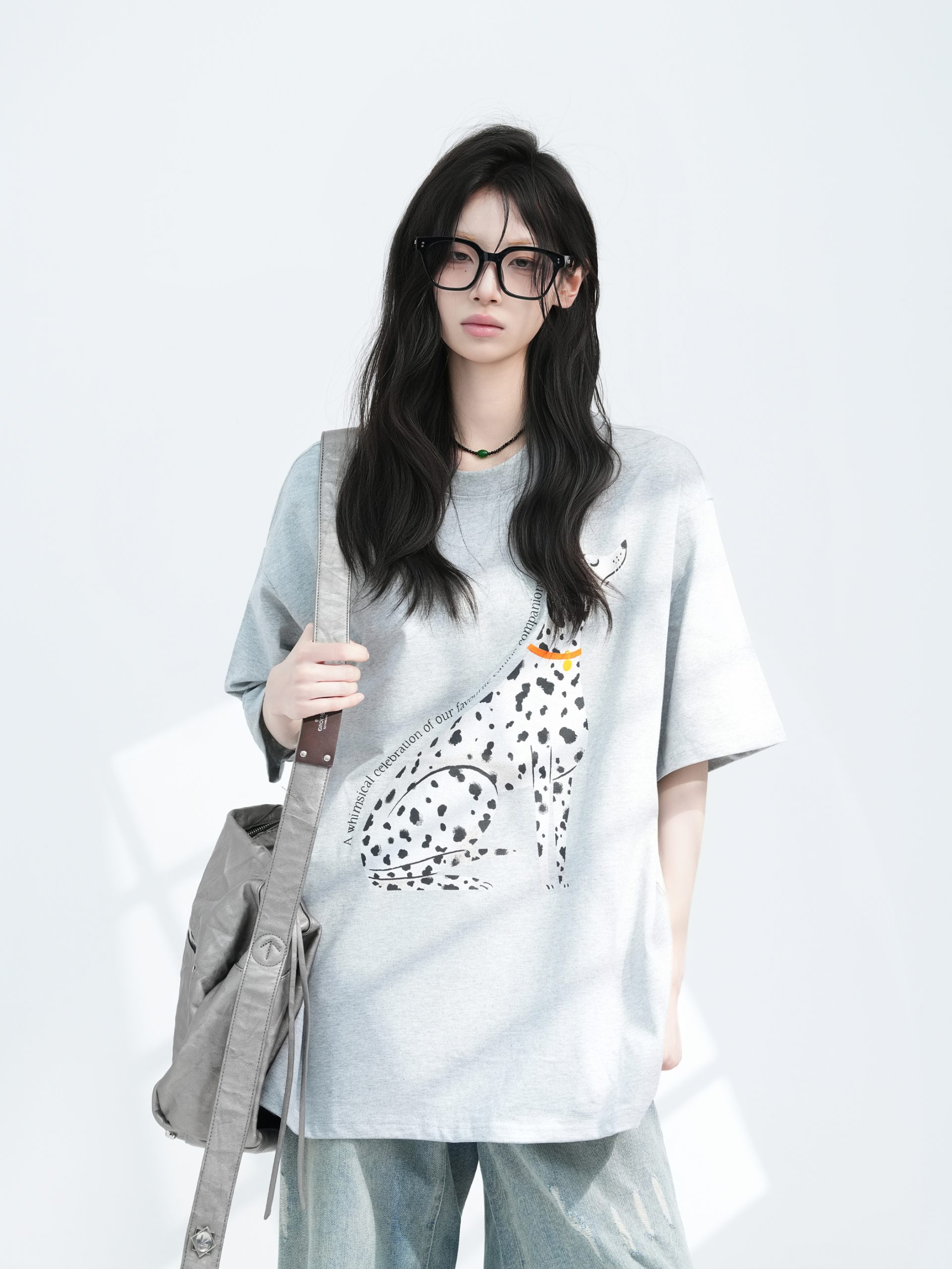 Embrace a playful vibe with our American Retro Spotted Dog Short Sleeve T-Shirt for Women, designed for a relaxed yet stylish look. This loose-fit, heavyweight tee captures the essence of 90s fashion, offering both comfort and a trendy silhouette that pairs perfectly with your favorite jeans or shorts. Ideal for summer outings, this casual top showcases a charming spotted dog graphic, making it a must-have for animal lovers and fashion enthusiasts alike. Don’t miss out on this fun addition to your wardrobe—add it to your cart today!