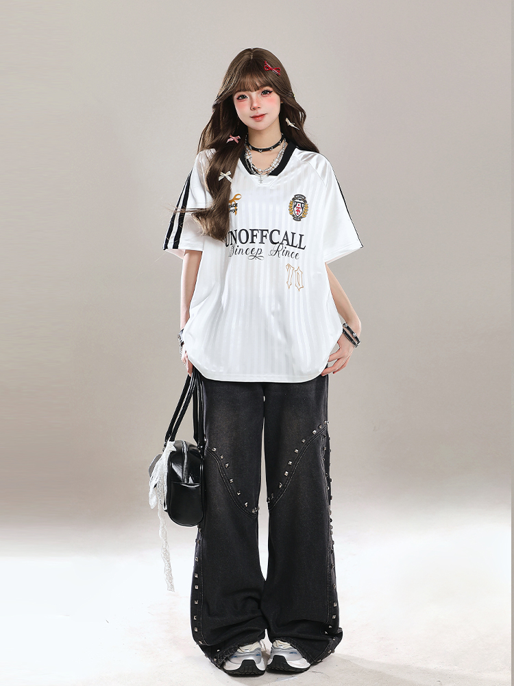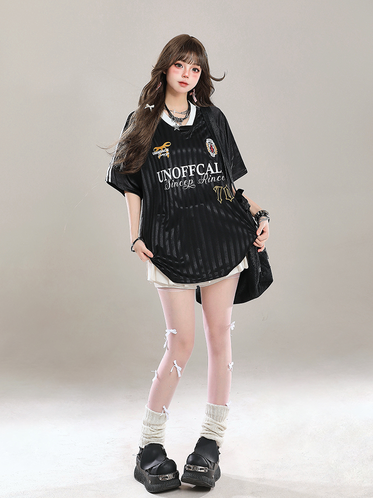 Concert Outfit V- Neck Sports Jersey Short Sleeve T- shirt Women Summer OOTD Loose Fit Top High-quality product featuring summer fits, concert outfit ideas, vacation outfits and more. Modern design that fits the latest trends. Premium materials ensure durability and comfort. Order now for special offers! Product designed with attention to every detail. Suitable for all occasions and personal styles.