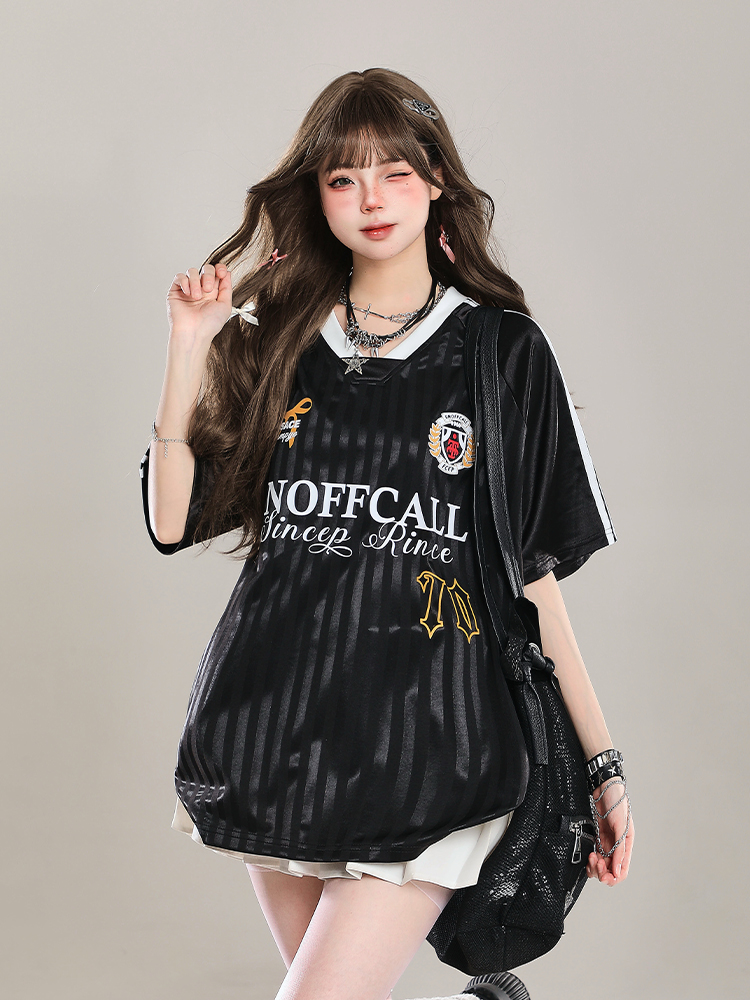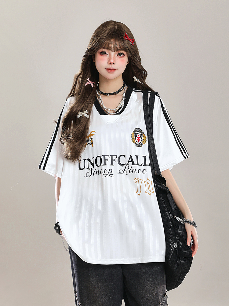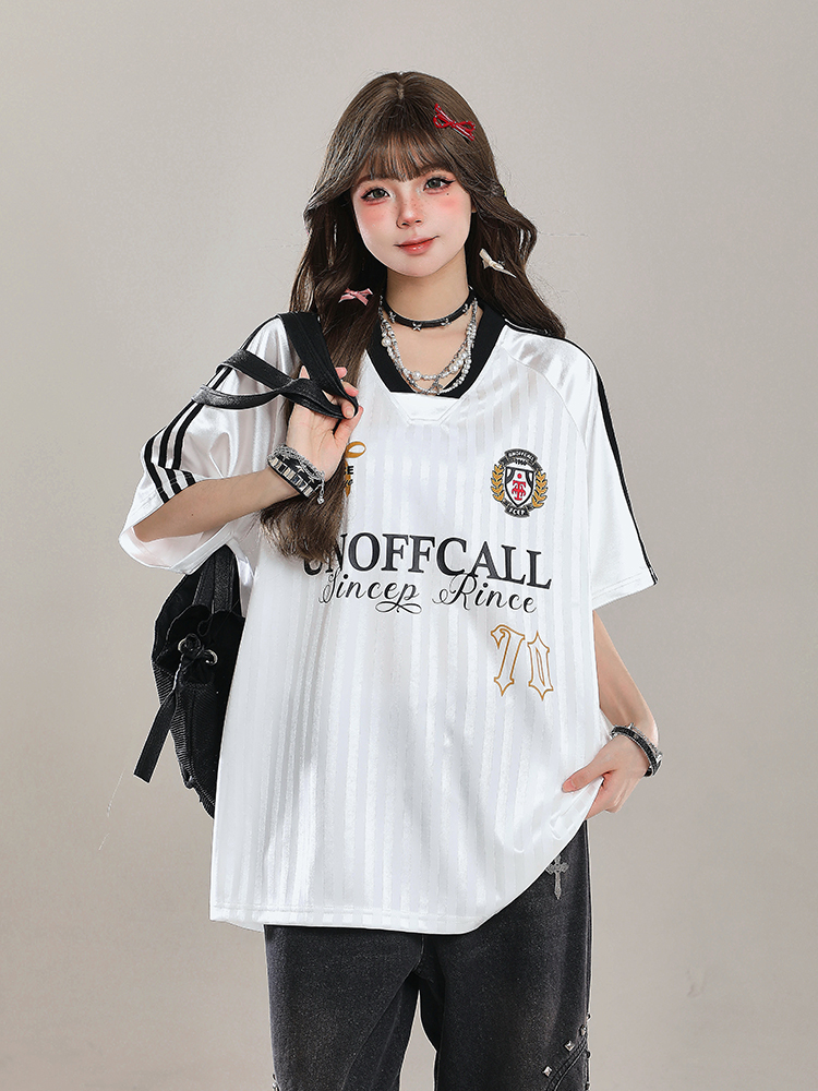 Elevate your summer style with our American-Style V-Neck Sports Jersey Short Sleeve T-Shirt for Women. This loose-fit top offers ultimate comfort and breathability, making it perfect for casual outings or active days. Its trendy V-neck design and sporty silhouette ensure you stay chic while enjoying a laid-back vibe. Don’t miss out on this versatile addition to your wardrobe—shop now and embrace effortless style!