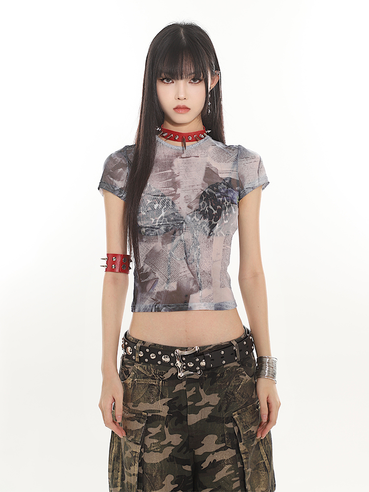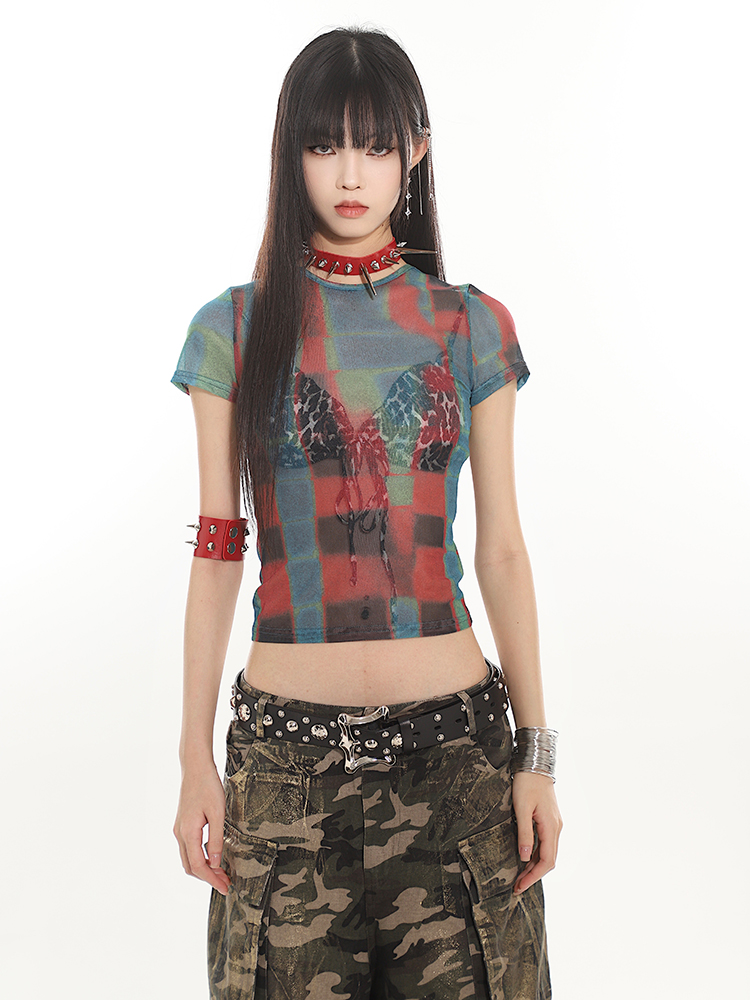 Elevate your summer wardrobe with our American Vintage Printed Mesh Sheer Short Sleeve Top for Women. This sexy, tight-fitting top features a stunning design that perfectly complements your curves, making it a must-have for any Y2K fashion enthusiast. Crafted from lightweight, breathable mesh, it ensures you stay cool and stylish during those warm days. Pair it with your favorite jeans or a sleek skirt for a chic look that turns heads. Don’t miss out on this trendy addition—add to your cart today!