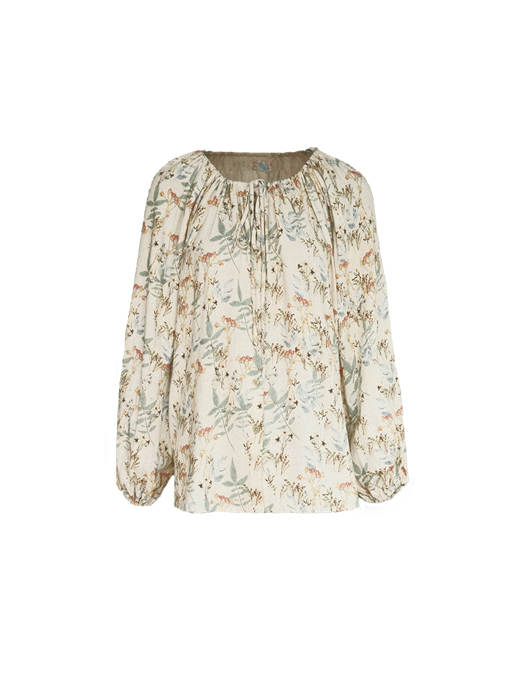 Concert Outfit Apricot Retro Linen Shirt Women Spring Loose Lantern Sleeve Top in, Vintage Herb Rosemary