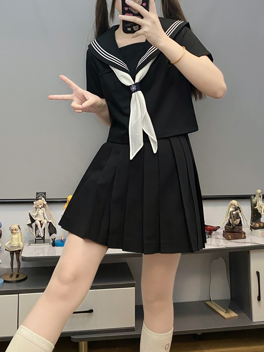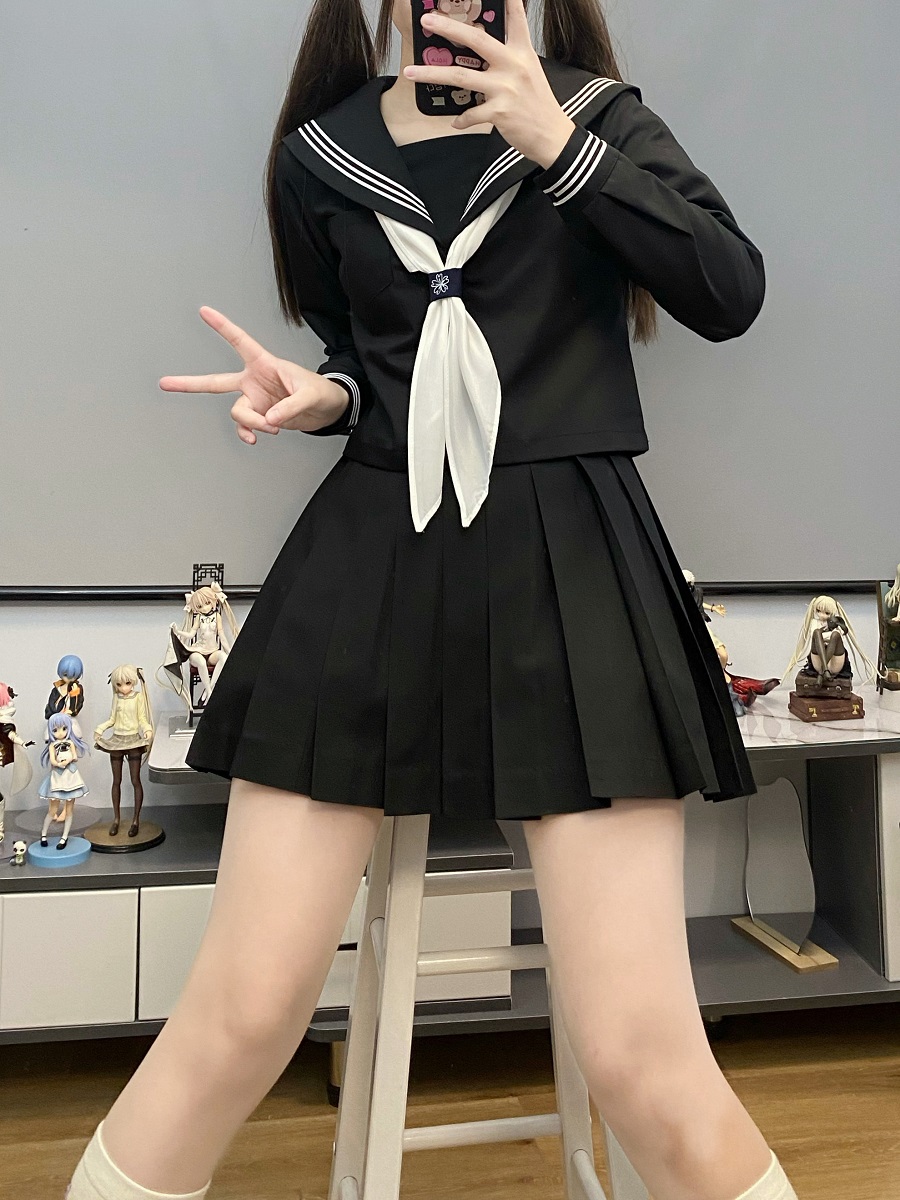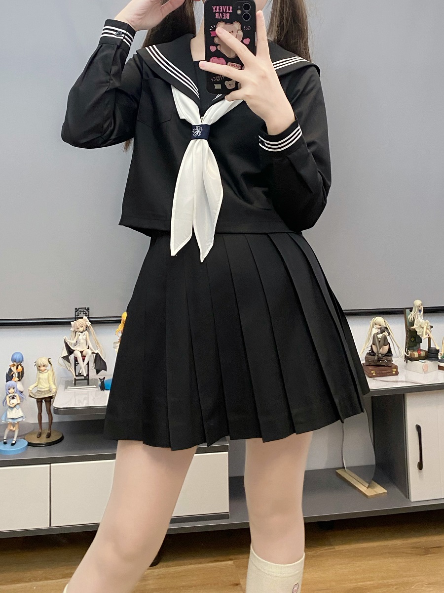 | Color | Black pleated skirt 42cm, Black short-sleeved top + white collar scarf + ring buckle, Black three-piece long-sleeve top + white collar scarf + ring buckle, Dark blue pleated skirt 42cm, Navy blue long-sleeve top + white collar scarf + ring buckle, Navy blue short-sleeved top + white collar scarf + ring buckle |
