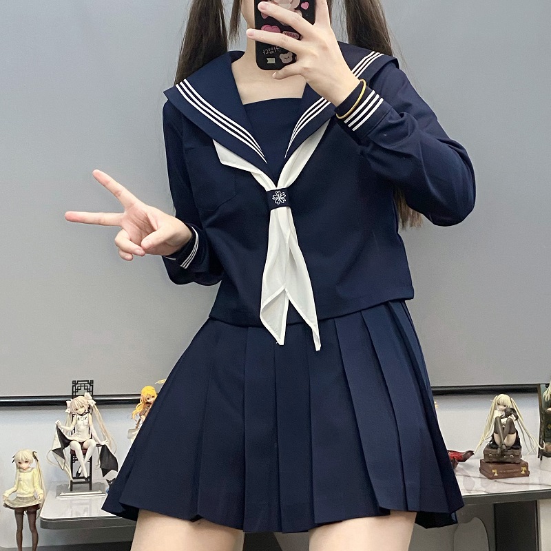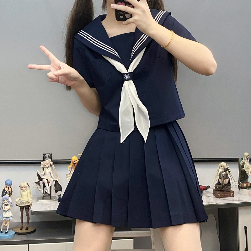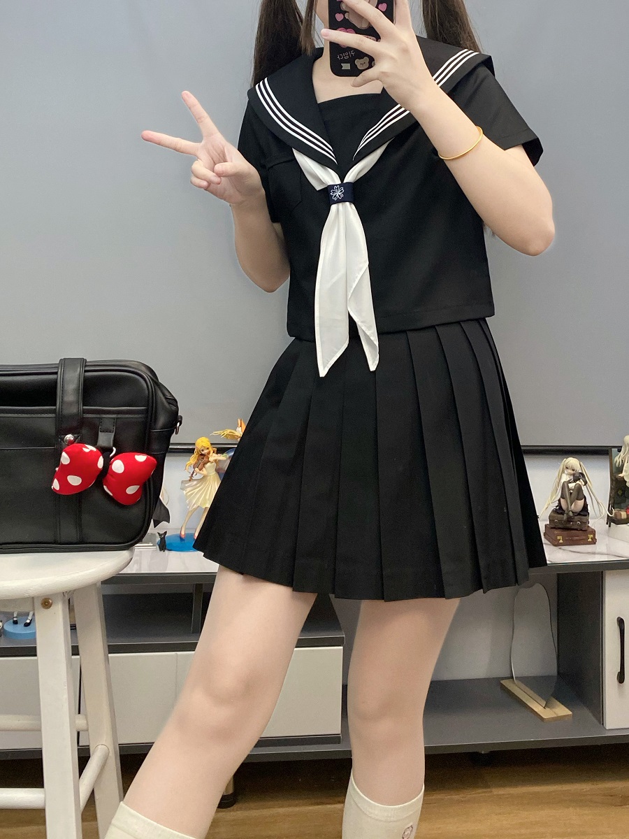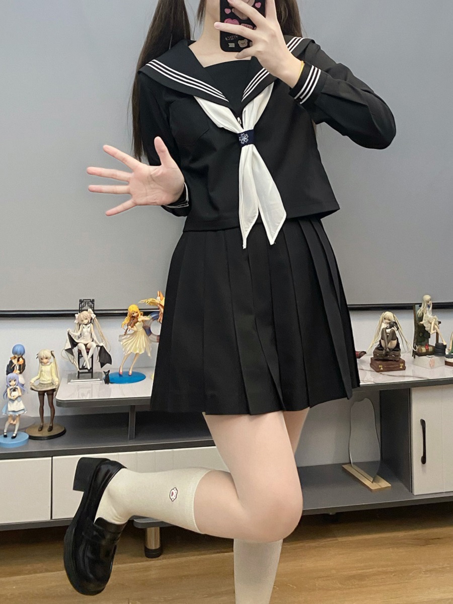 | Color | Black pleated skirt 42cm, Black short-sleeved top + white collar scarf + ring buckle, Black three-piece long-sleeve top + white collar scarf + ring buckle, Dark blue pleated skirt 42cm, Navy blue long-sleeve top + white collar scarf + ring buckle, Navy blue short-sleeved top + white collar scarf + ring buckle |