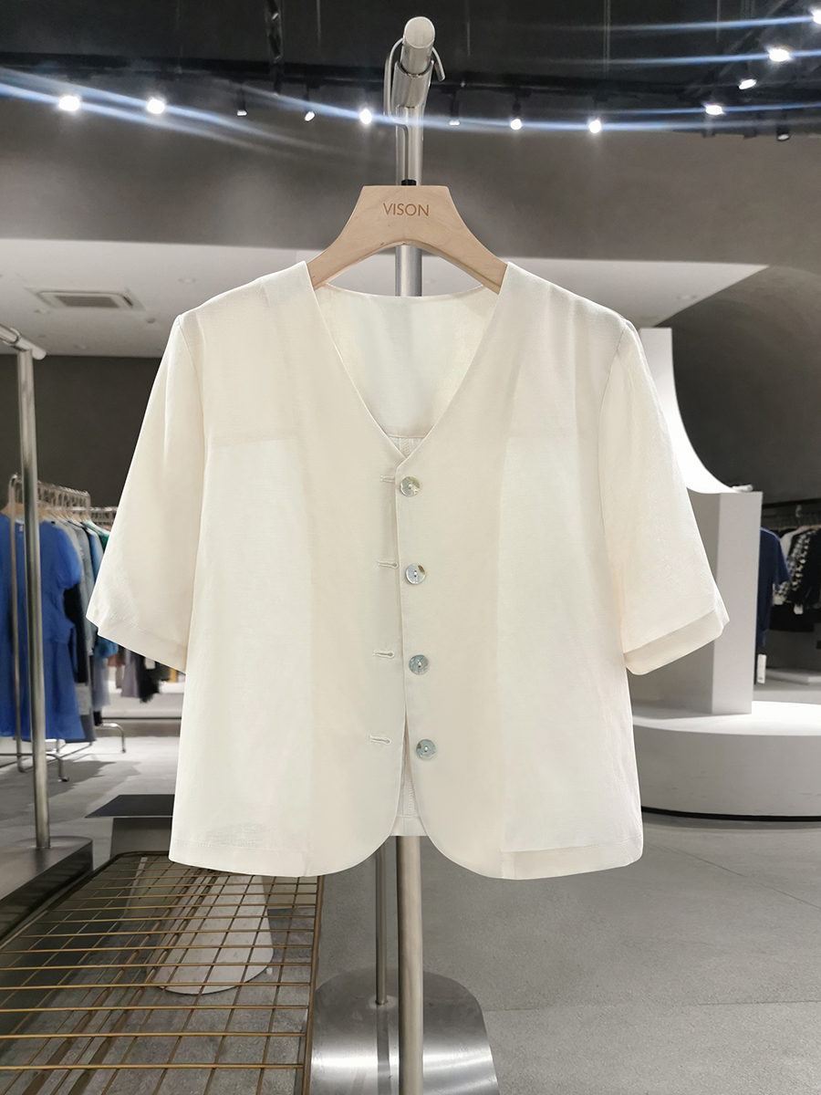 Elevate your summer wardrobe with our Beige Minimalist Short Sleeve V-Neck Shirt for Women, a versatile and trendy top perfect for any occasion. Crafted from lightweight fabric, this exquisite shirt features a flattering V-neck design and a relaxed fit, making it an ideal choice for layering as a thin summer jacket or wearing alone. Enjoy effortless style and comfort that transitions seamlessly from day to night. Don’t miss out on this essential piece—add it to your cart today!
