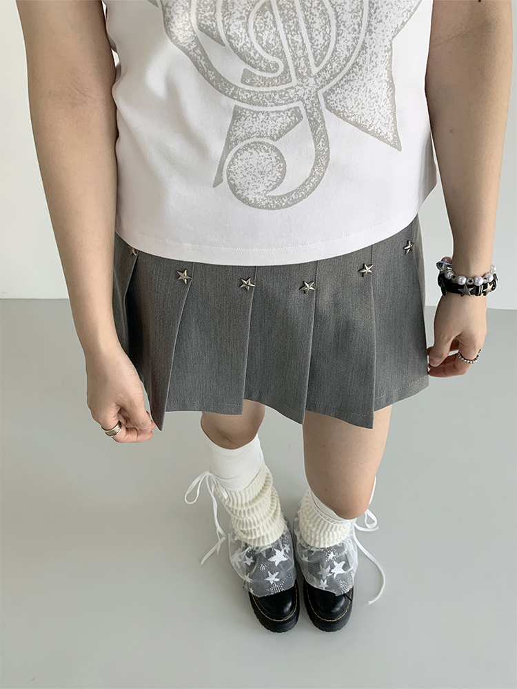 Elevate your wardrobe with our Black Star-Shaped Rivet Pleated Midi Skirt, a Y2K fashion essential that combines edgy style with versatile functionality. Featuring a unique layered design and striking rivet details, this skirt offers a flattering fit that accentuates your silhouette while providing comfort and movement. Pair it effortlessly with your favorite tops and accessories for a chic look that stands out on any occasion. Don’t miss out on this statement piece—add it to your cart today and embrace your bold fashion sense!