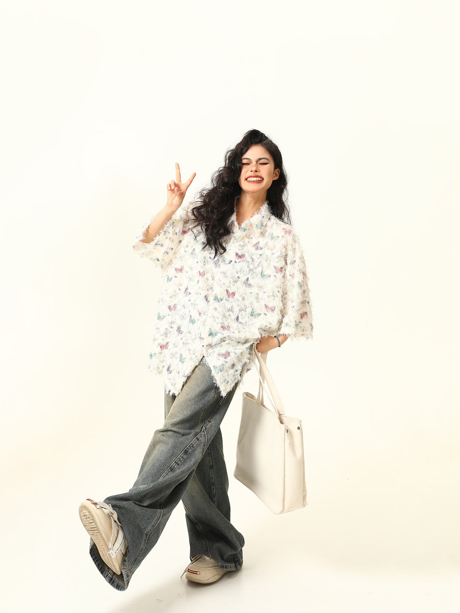 Elevate your summer wardrobe with our Butterfly Tassel Short Sleeve Shirt for Women, a must-have trendy loose blouse that embodies the essence of Y2K style. Crafted for a relaxed fit, this chic summer top features playful tassel details and a stunning butterfly print, perfect for casual outings or beach days. Embrace the effortless elegance and versatility of this blouse—pair it with your favorite shorts or jeans for an instant fashion upgrade. Don’t miss out on this 2025 fashion staple; add to your cart today!