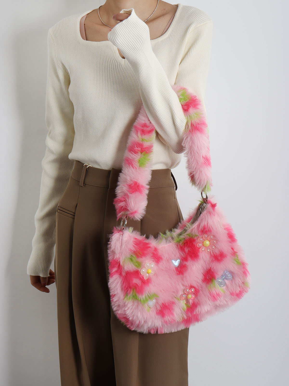 Concert Outfit Cy Pink Plush Underarm Bag Women Sweet Strawberry Leopard Print Crossbody Tote Cute Small