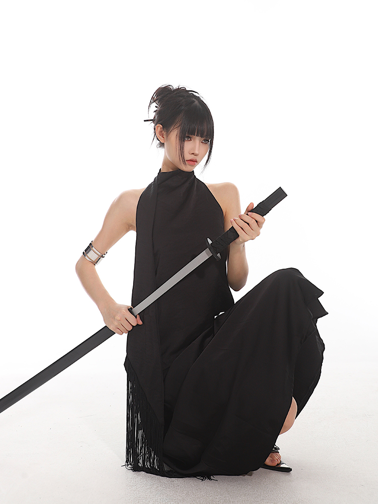 Concert Outfit Dark Satin Halter Backless V, Mermaid Skirt Set Outfit Y2K