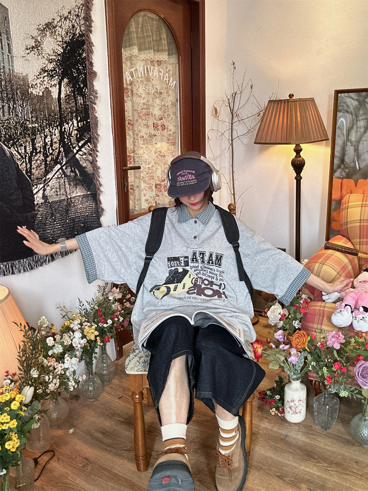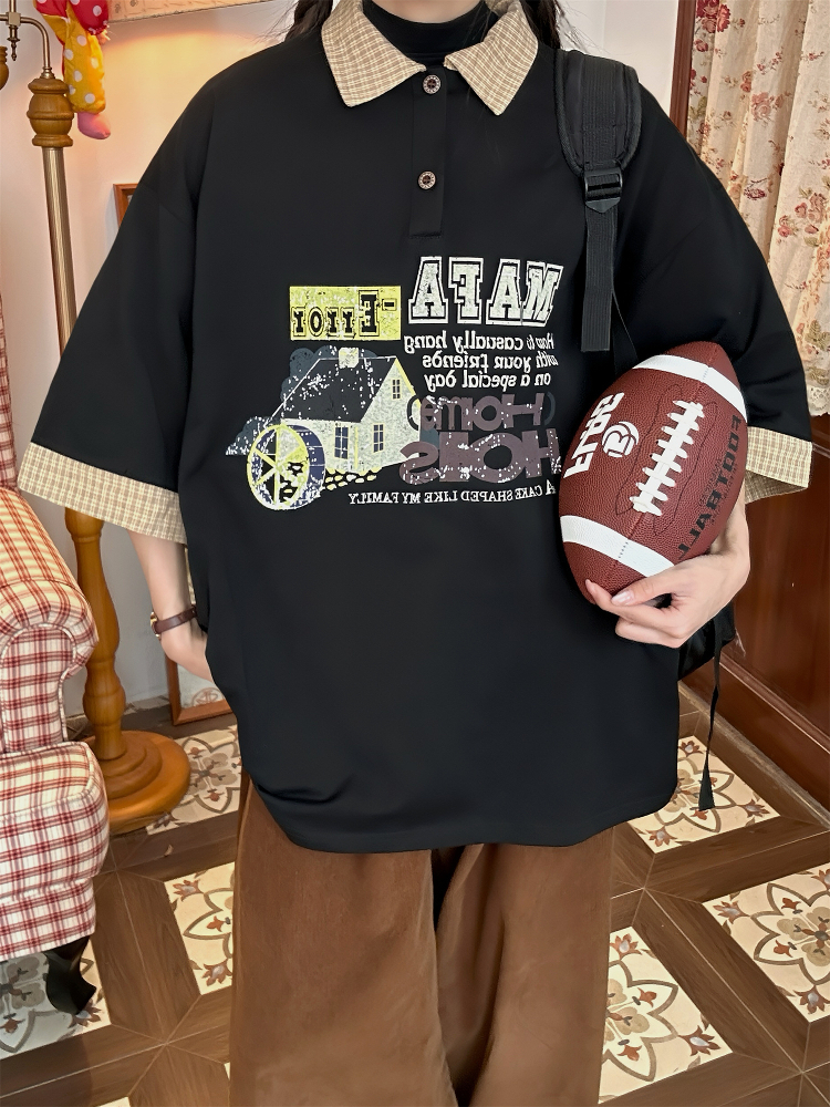Elevate your summer style with our Color Block Cartoon Short Sleeve Shirt, a unique handmade American retro faux two-piece polo top designed for women who love casual fashion. This eye-catching shirt features a playful color block design and a comfortable fit, making it the perfect choice for any laid-back outing or casual day out. Embrace your individuality and stay cool while looking chic—add this must-have piece to your wardrobe today. Shop now.