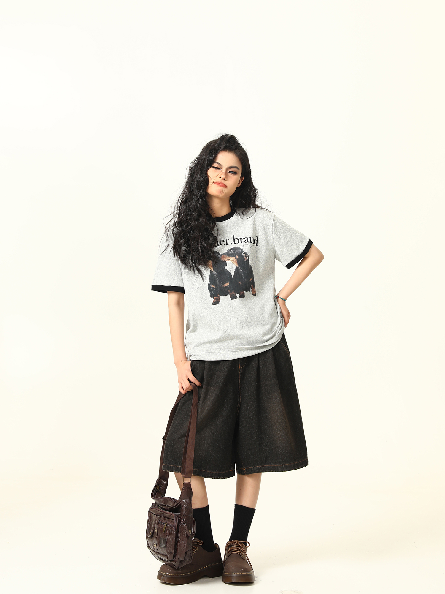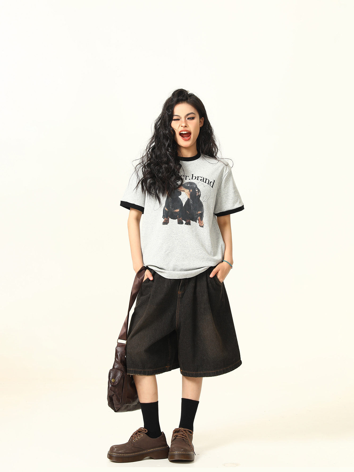 Concert Outfit Retro Short Sleeve T- shirt Women Summer Top Small Dogs Casual