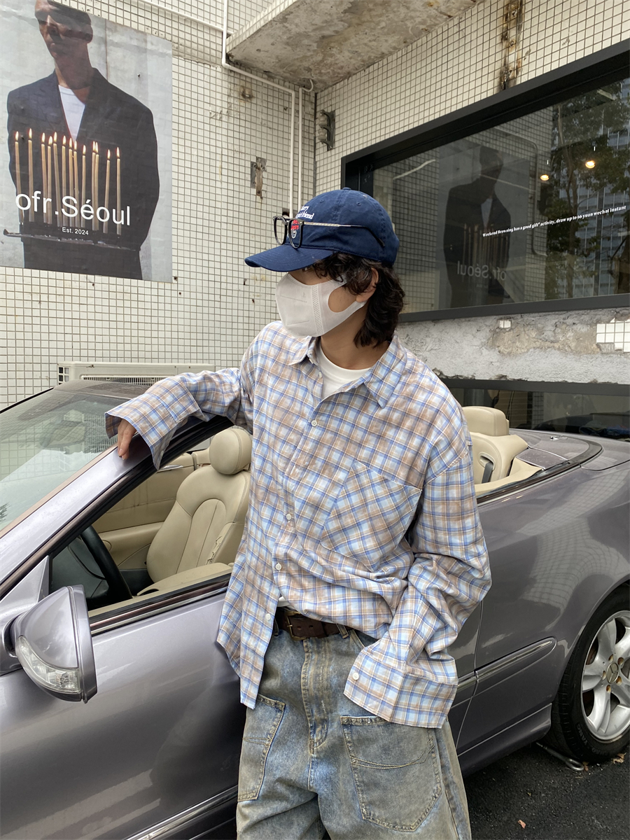 Concert Outfit Patchwork Plaid Long Sleeve Shirt Jacket Men, Women Retro Loose Casual Checkered Top Spring, Summer, Autumn