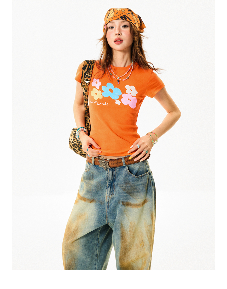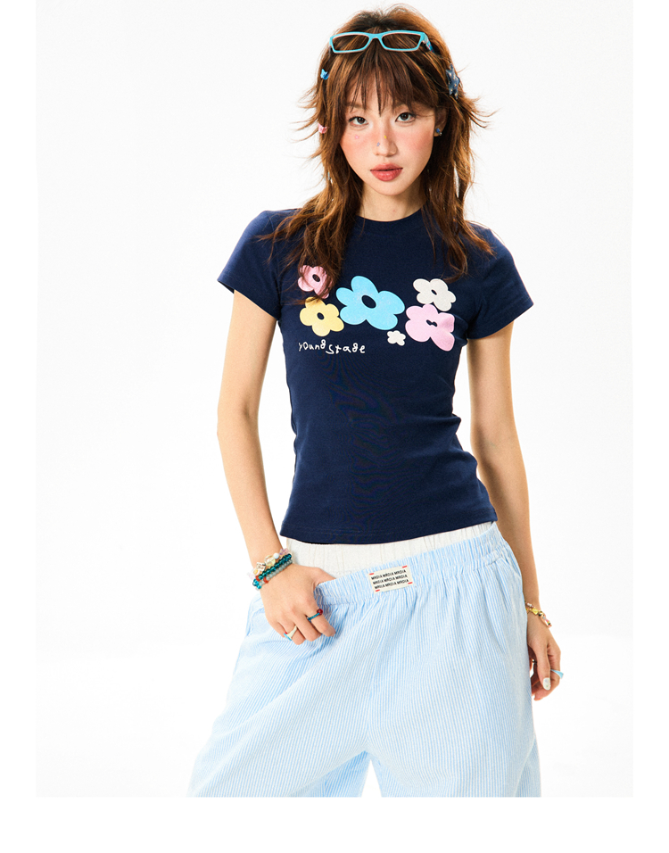 Elevate your summer wardrobe with our Colorful Floral Shoulder Short Sleeve T-Shirt for Women, designed for a flattering slim fit that accentuates your silhouette. This dopamine crop top captures the essence of 90s style with its vibrant floral print, making it the perfect choice for sunny days and casual outings. Crafted for comfort and versatility, it’s easy to pair with your favorite high-waisted jeans or shorts. Don’t miss out on this must-have piece—add it to your cart and embrace the joy of effortless fashion!