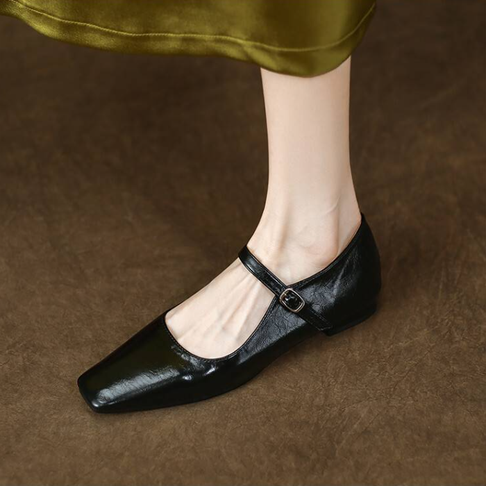 Step into effortless style with our Comfortable Genuine Leather Mary Jane Flat Shoes, designed with a chic square toe and a secure single buckle for an elegant touch. Crafted from premium leather, these flats offer a perfect fit and all-day comfort, making them the ideal choice for everyday wear. Elevate your wardrobe with these versatile shoes that seamlessly blend fashion and functionality. Don’t miss out on this essential addition to your collection—add to your cart today!