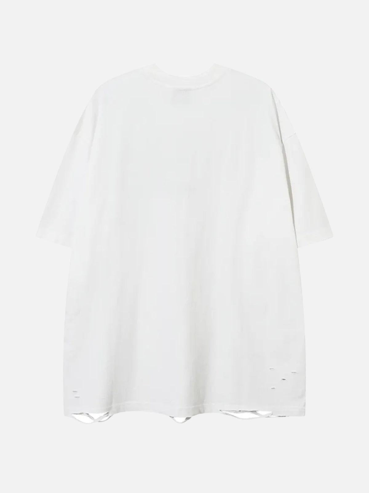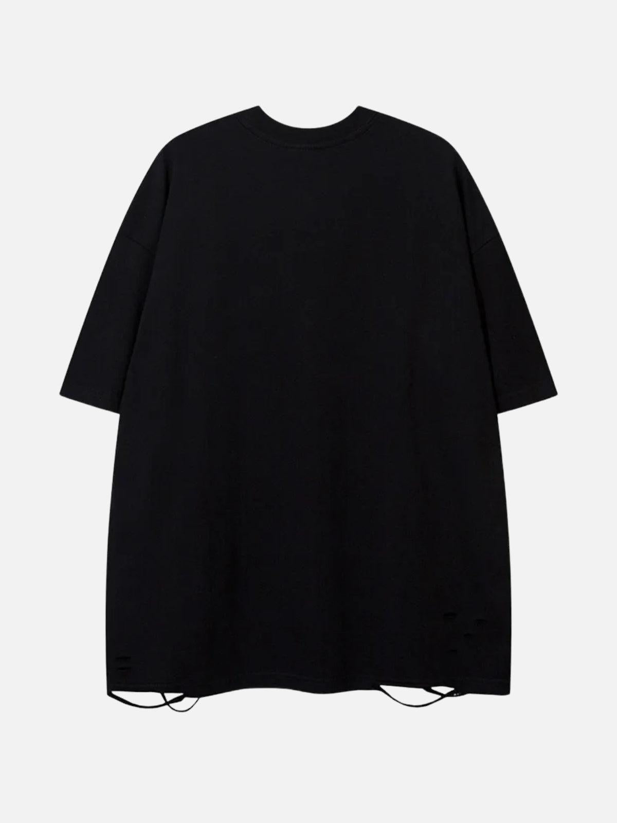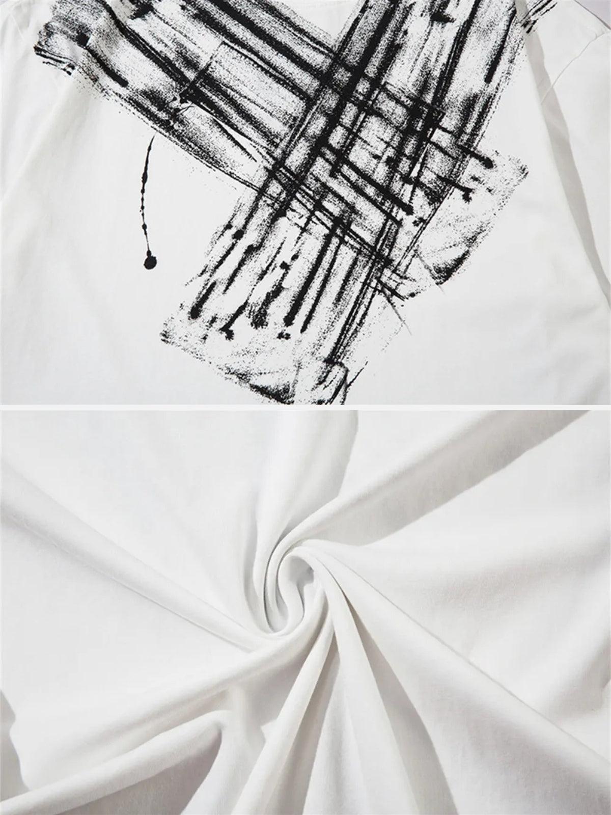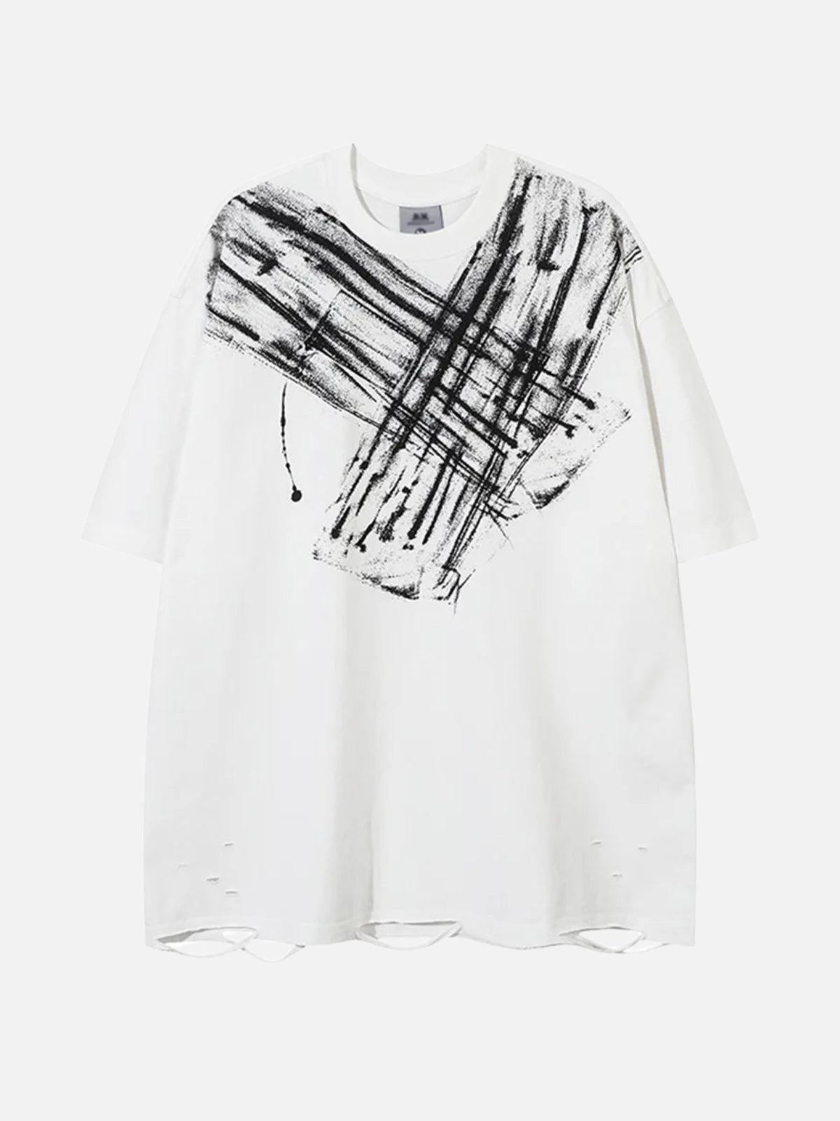 Defy the ordinary with this bold, abstract splash of white paint streaking across a rich black canvas, perfect for those who live to stand out. The oversized fit offers a relaxed vibe, effortlessly blending comfort with cutting-edge style, while the distressed hem adds an edgy twist. Whether you’re pairing it with sleek jeans or layering it under a streetwear jacket, this piece is versatile enough to keep your summer style fresh. Available in M, L, XL, and 2XL, this tee is all about making a powerful statement in both black and white. Get ready to redefine summer fashion with every wear.
