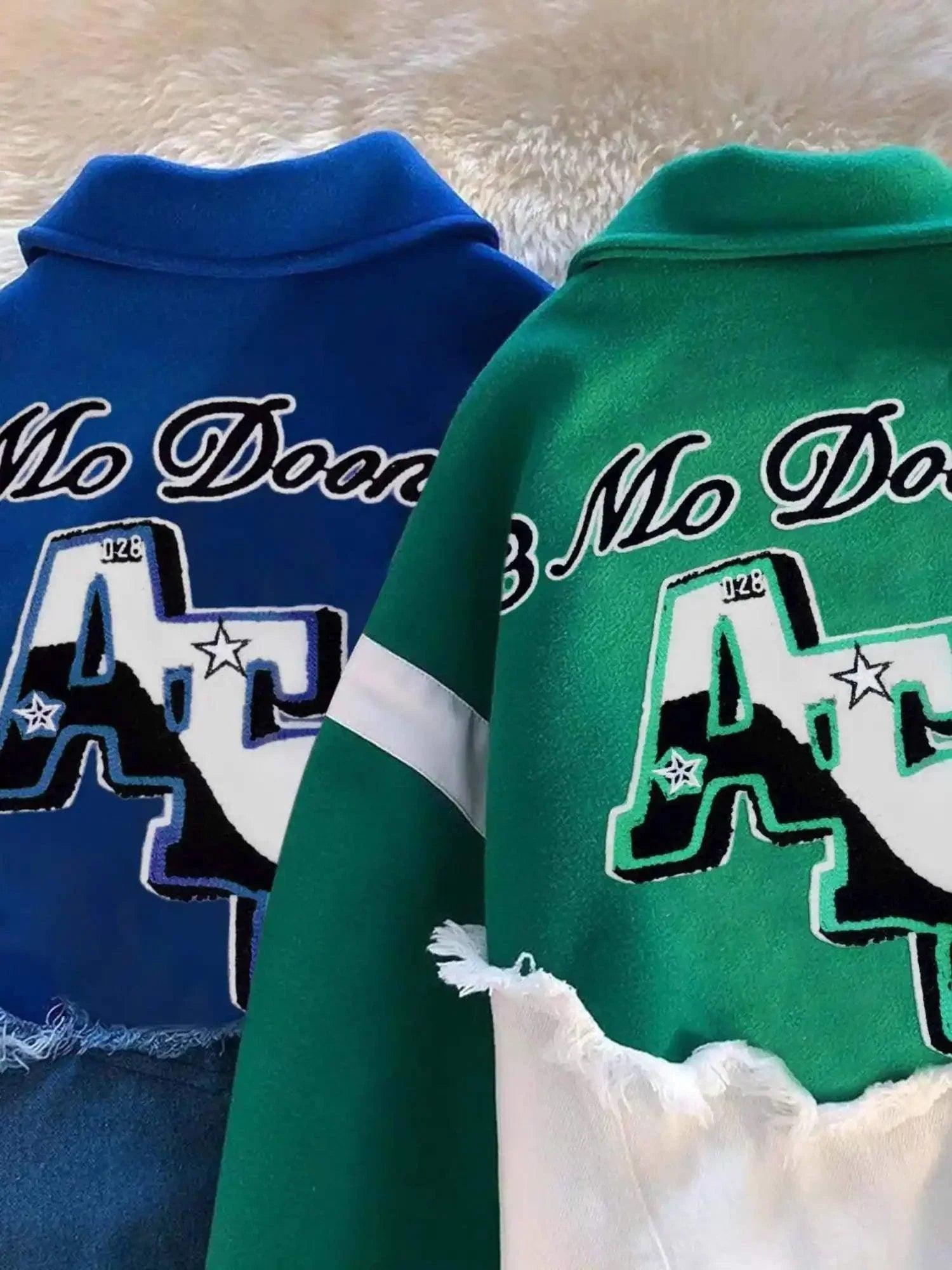 Dominate the streets with a jacket that screams urban edge and unapologetic style. This piece pairs bold blue and green hues with a unique mix of denim and fabric, creating a standout look with its frayed textures and varsity-inspired lettering. Perfect for those who crave a loose fit, it offers sizes ranging from M to XXL, ensuring the right vibe for everyone. Whether you’re layering it over your favorite tee or pairing it with distressed jeans, this jacket is your ticket to effortless y2k outfit inspo. Get ready to redefine streetwear fashion with every wear.