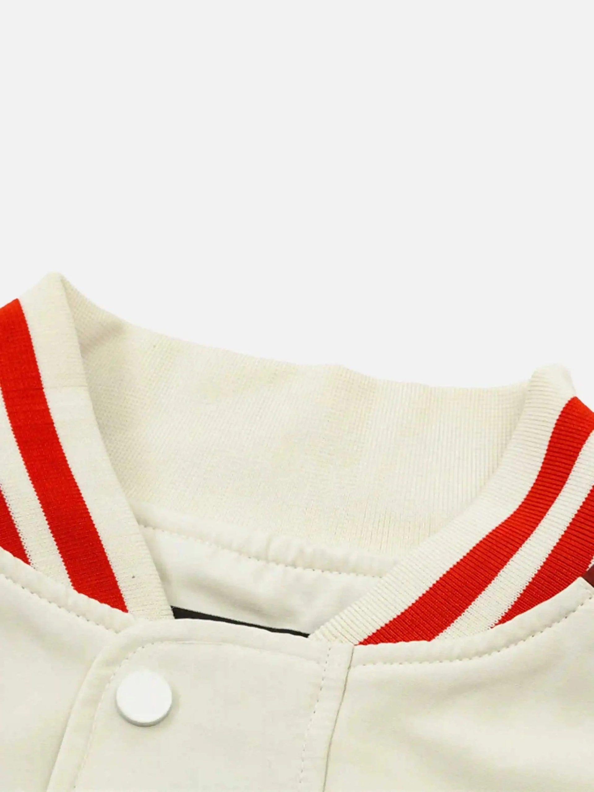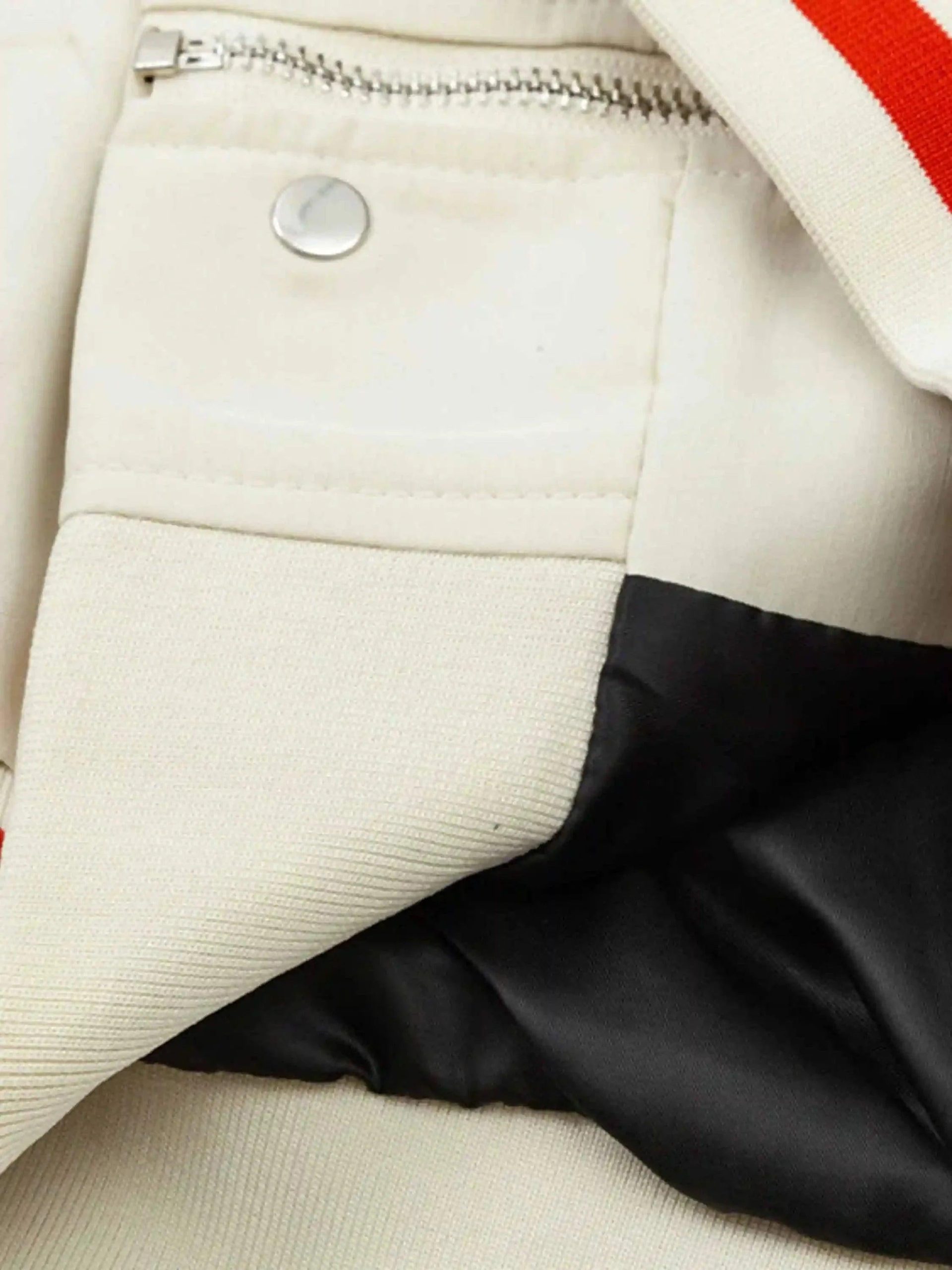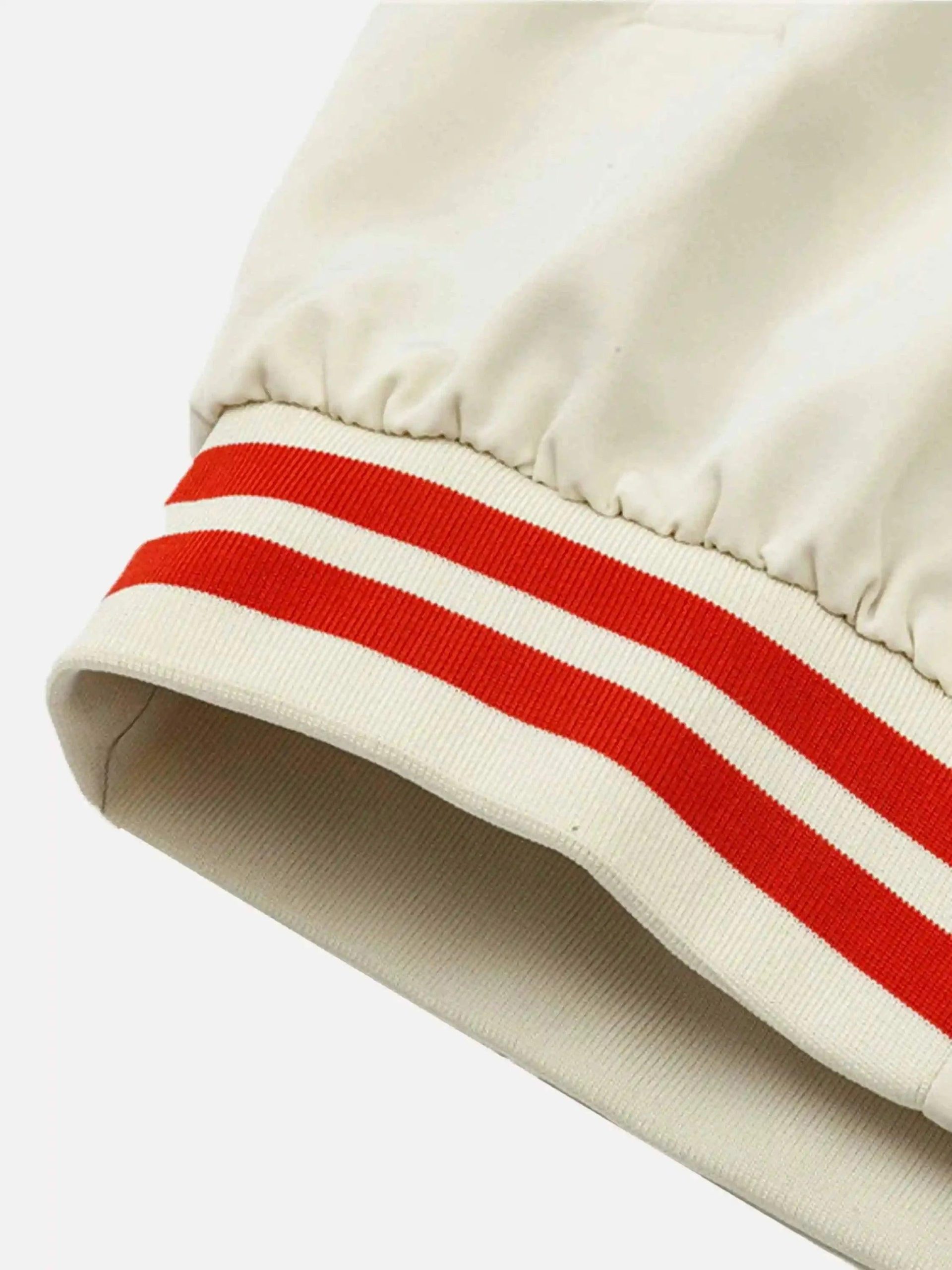 When you throw on this jacket, you’re not just wearing a piece of clothing; you’re draping yourself in an attitude. The bold maroon and white palette commands the spotlight, while intricate embroidered patches add layers of depth and texture, creating a look that’s both classic and daring. Available in M, L, and XL, this jacket offers a relaxed fit that pairs effortlessly with your favorite streetwear essentials. Whether you’re heading to an urban event or just chilling with friends, this piece is perfect for those who live and breathe streetwear fashion. Ready to redefine your y2k outfits?