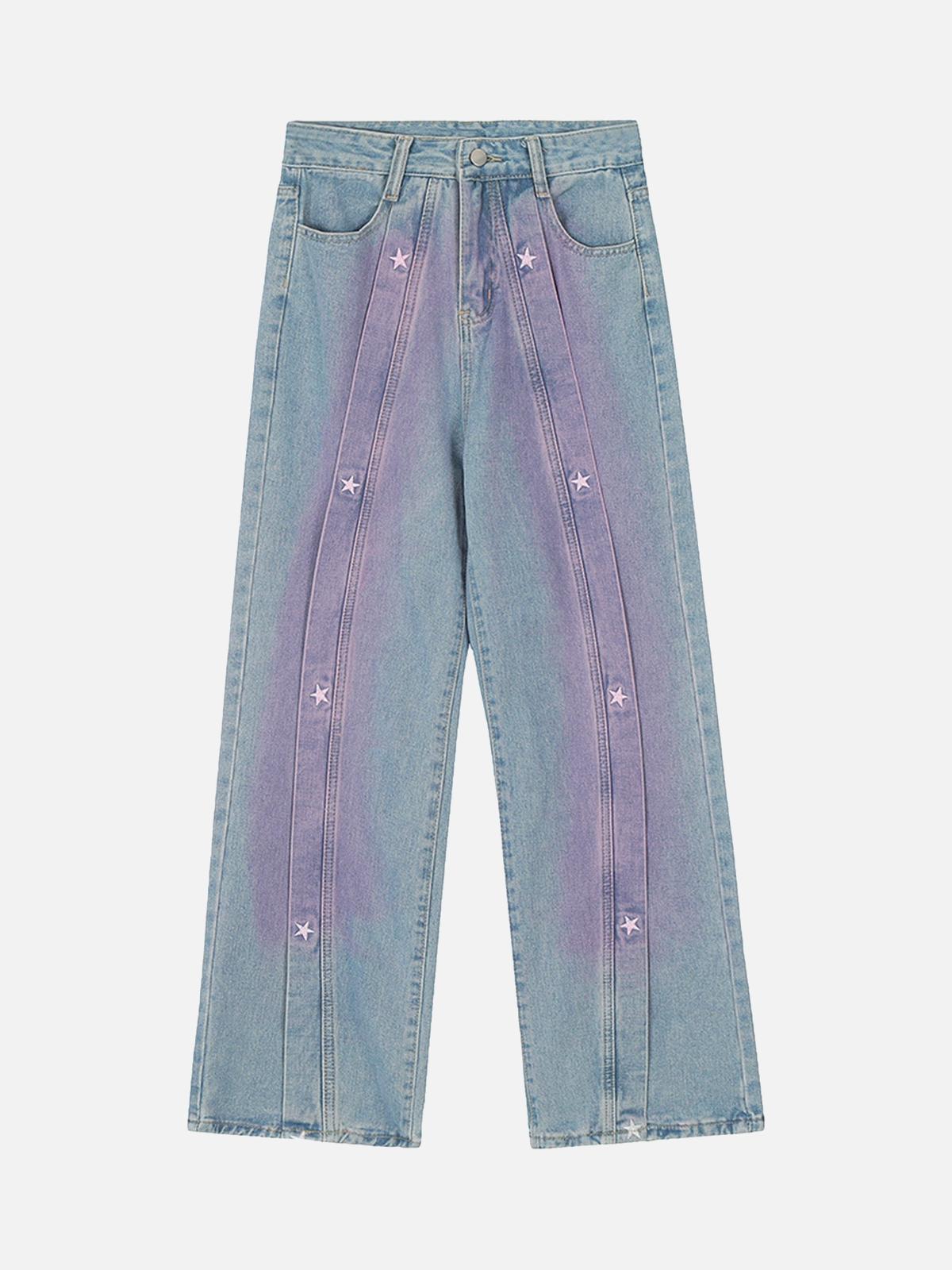 Concert Outfit Retro Spray- Painted Star Embroidered Jeans