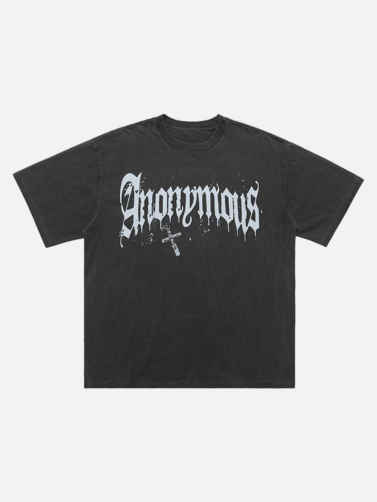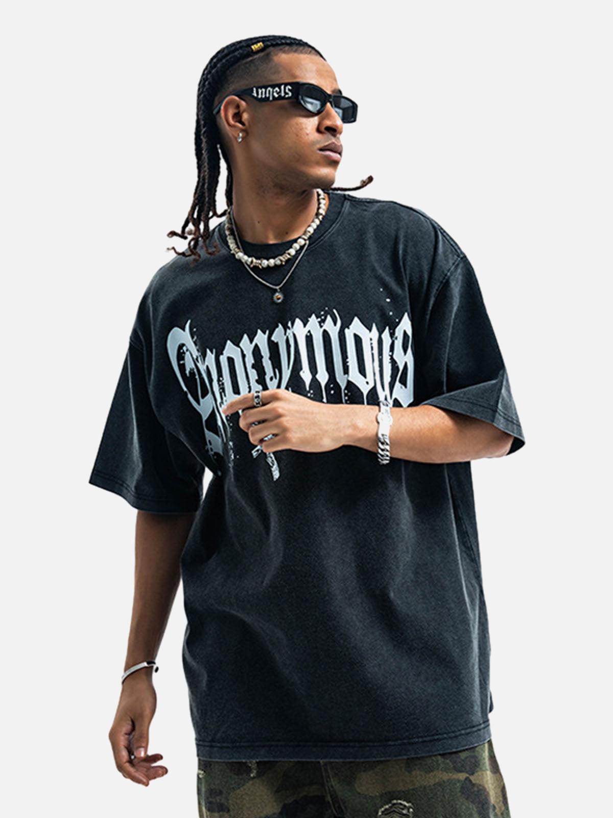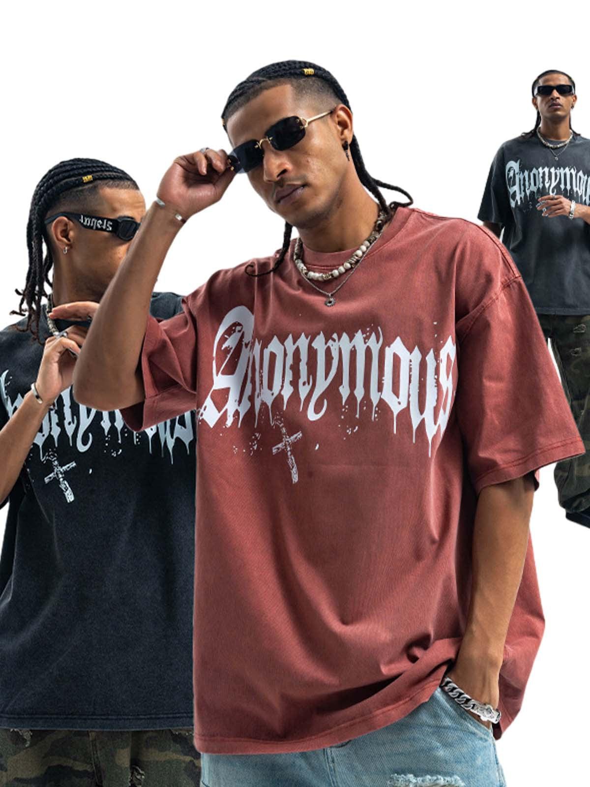 Unleash your inner rebel with this striking tee that merges bold design with urban flair. The distressed black fabric serves as the perfect canvas for the stark white, gothic-inspired ‘Anonymous’ print, giving off an effortlessly cool vibe. Available in versatile colors like deep dark gray and vibrant red, and a range from S to 2XL, this piece fits any style or mood. The relaxed fit and soft texture make it ideal for layering with your favorite summer outfit or standing alone as a statement piece. Embrace the streets with confidence and redefine your summer style game.