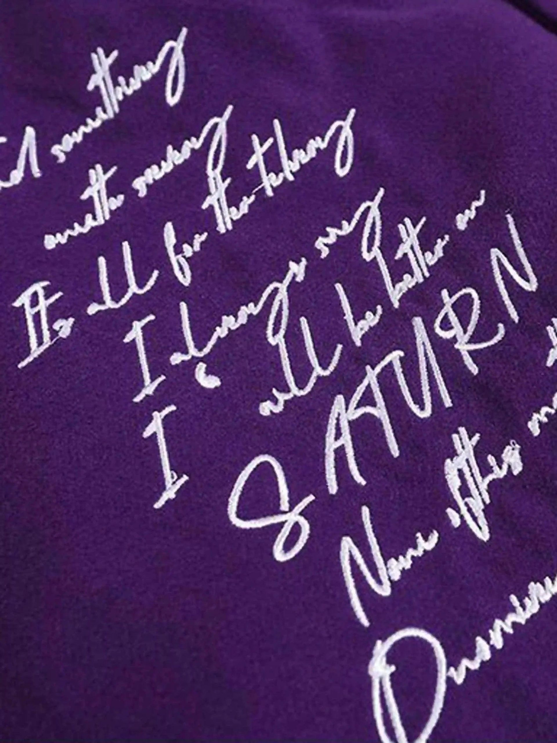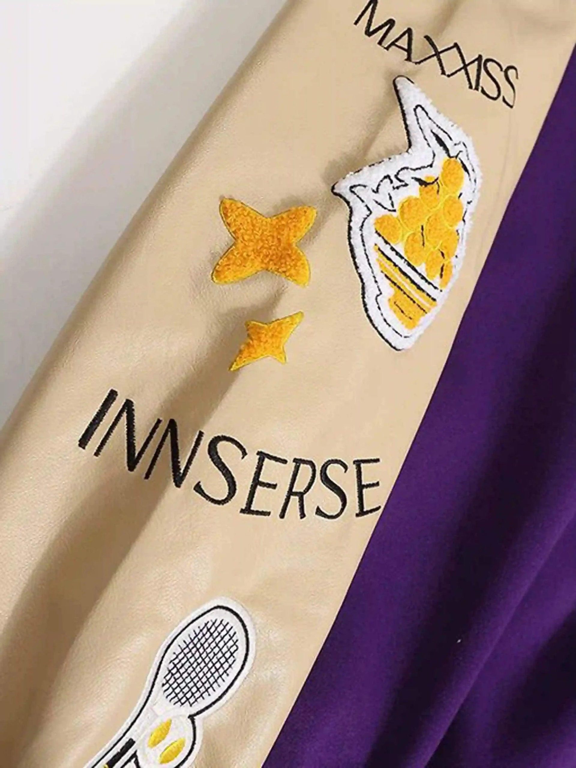 Break the mold with this bold varsity jacket, a vibrant fusion of purple dominance and beige contrast, adorned with eclectic patches that scream individuality. The playful embroidery and unique text details capture the essence of urban streetwear fashion, making it the perfect piece for those who dare to be different. Available in sizes M, L, and XL, this jacket delivers a comfortably relaxed fit, effortlessly elevating your y2k outfits with its retro charm. Whether you’re styling it with denim or layering over a hoodie, this jacket is your ticket to turning heads. Grab yours now and redefine your outfit inspo.