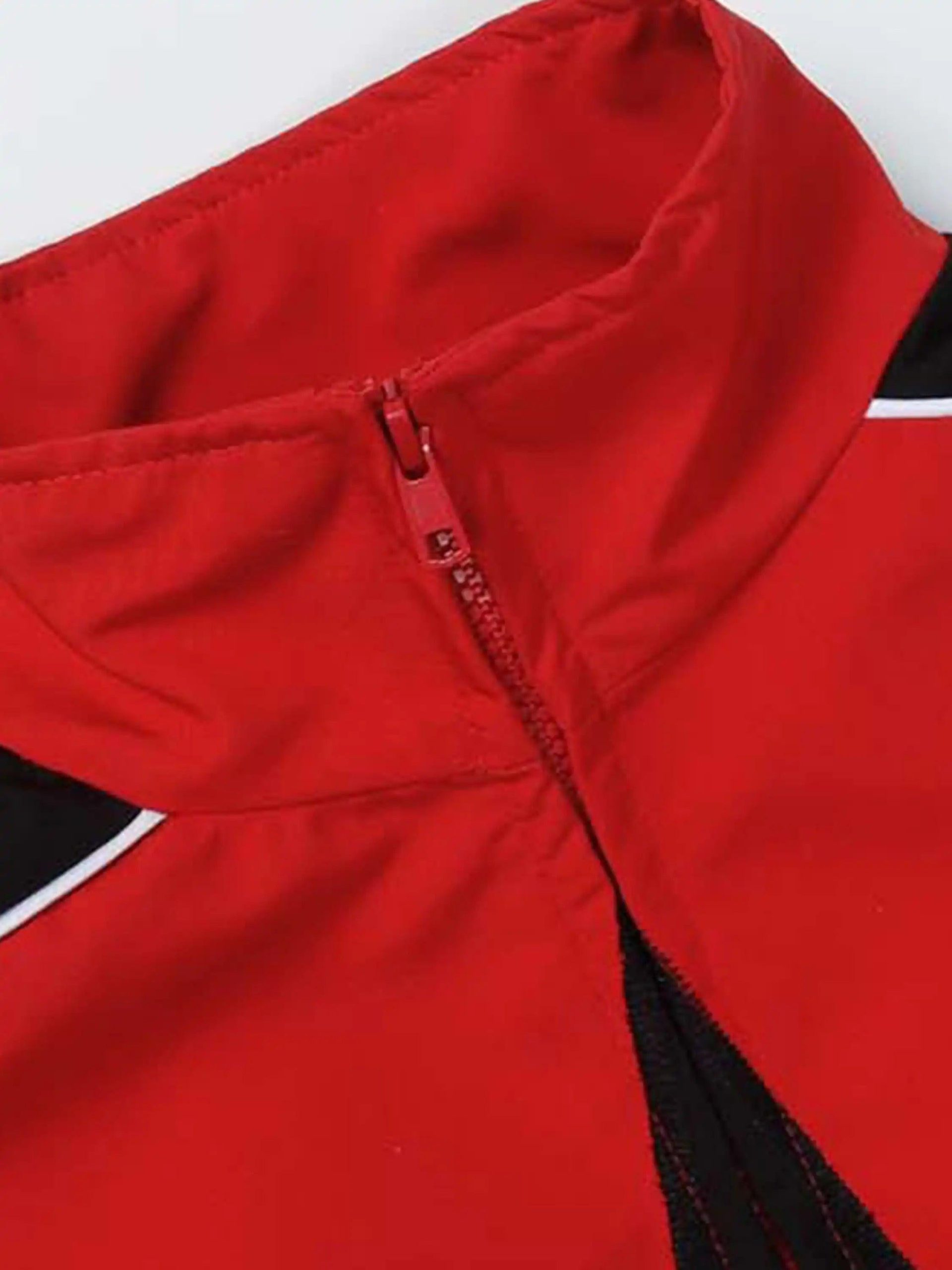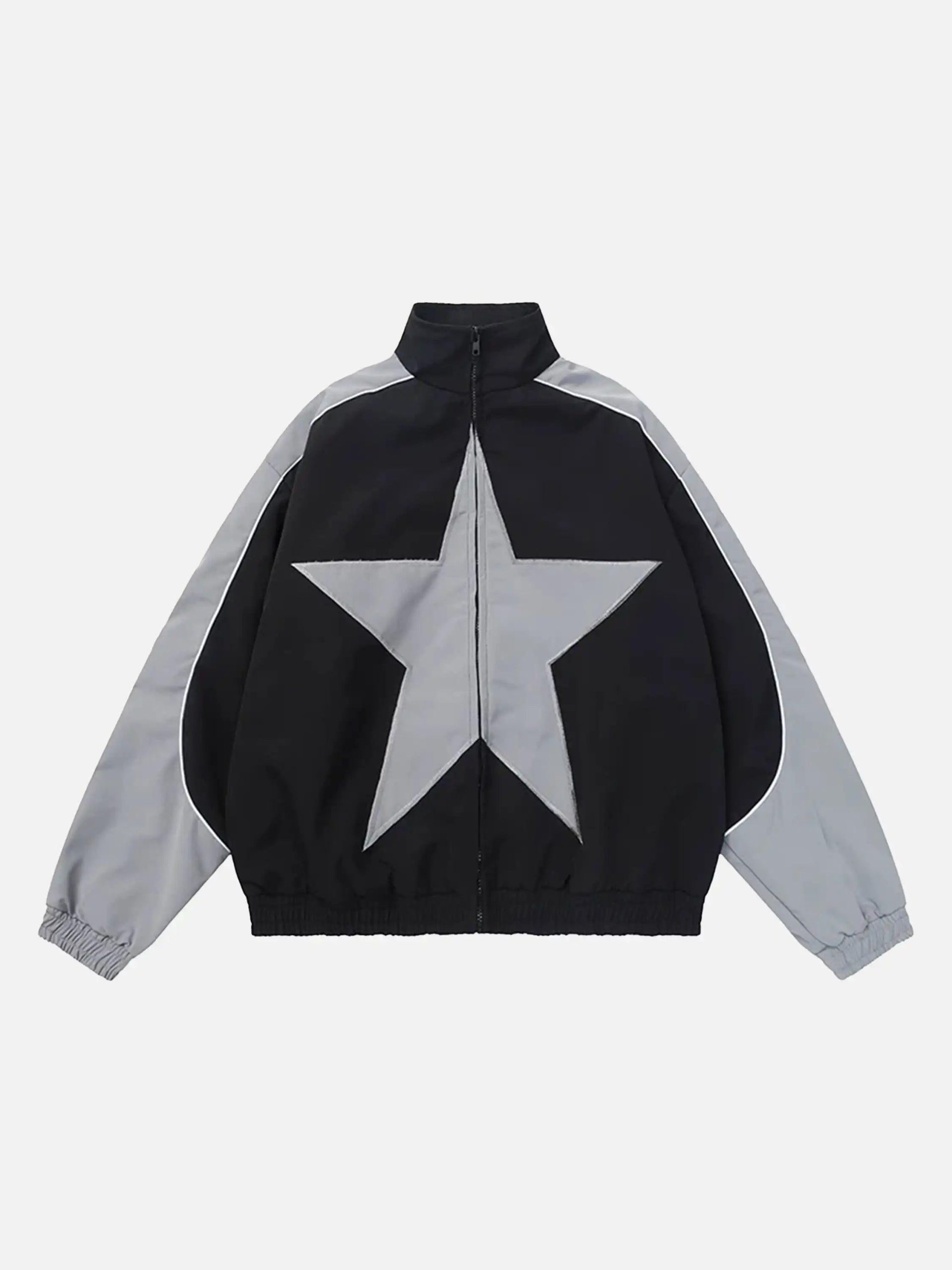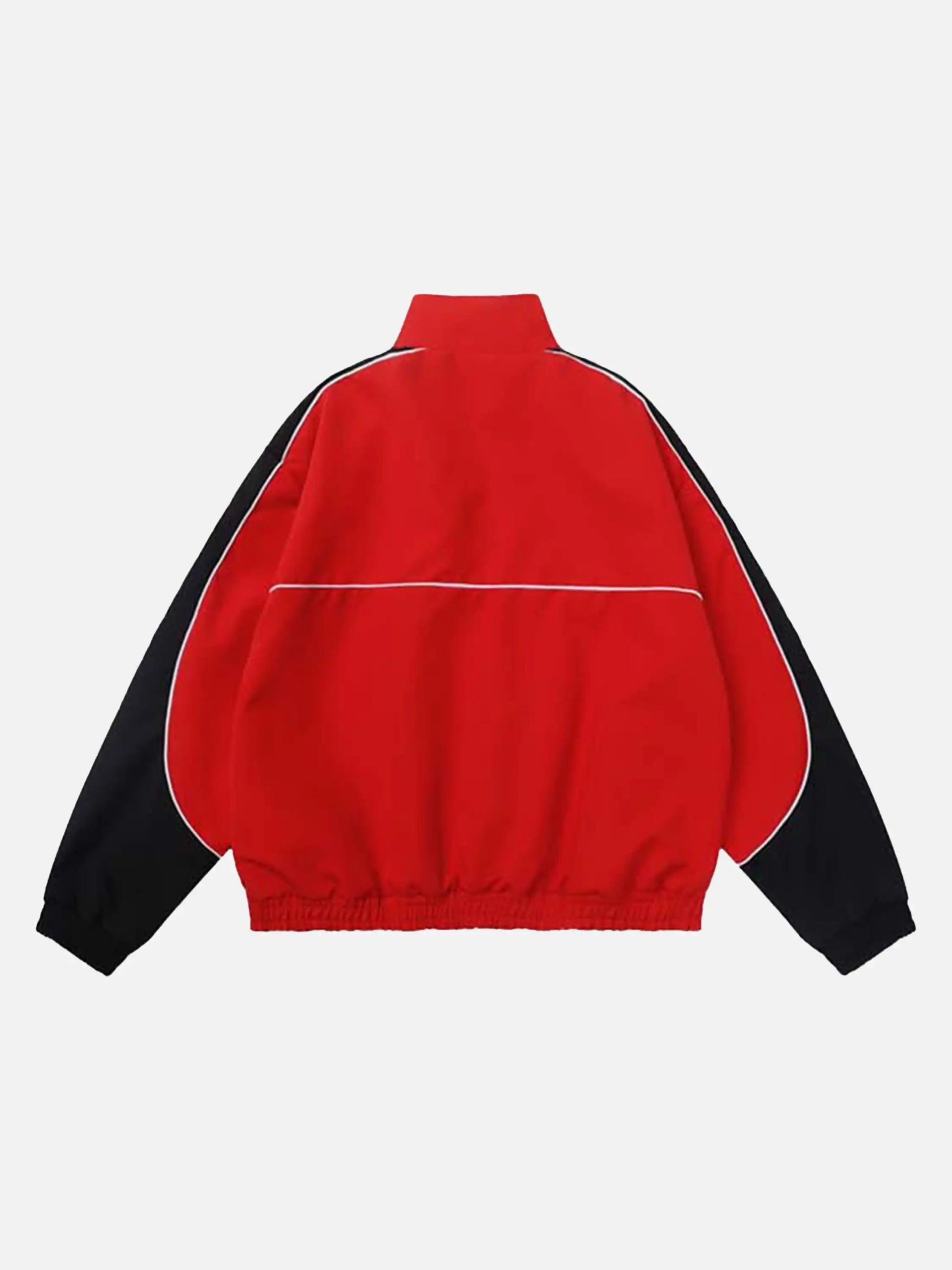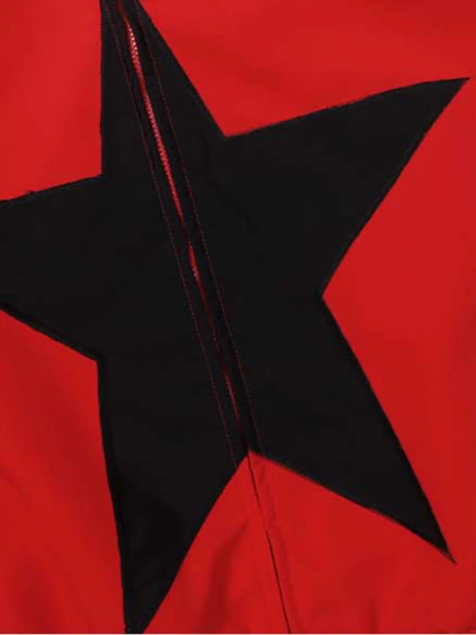 Stand out with a bold, star-emblazoned design that screams confidence and attitude. This jacket fuses striking red and black hues with a standout star motif, creating a look that’s both daring and unforgettable. The sleek piping along the sleeves adds a modern twist, while the relaxed fit ensures comfort in every movement. Available in versatile sizes M, L, and XL, it’s the perfect addition for those who embrace streetwear fashion with a touch of y2k nostalgia. Pair it with your favorite kicks and hit the streets with style that won’t be ignored.