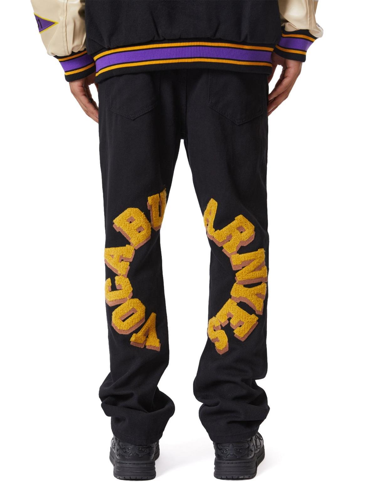 Break boundaries and redefine your streetwear fashion game with these bold pants that scream individuality. The striking yellow lettering pops against a sleek black canvas, creating a vibrant contrast that demands attention. Crafted for those who embrace the urban edge, the textured embroidery adds a tactile dimension, setting you apart with every step. Available in versatile sizes M, L, and XL, these pants offer a comfortable fit that blends seamlessly into your collection of y2k outfits. Pair them with your favorite kicks and a casual tee for an effortlessly cool vibe that’s always on point. Ready to step up your outfit inspo?