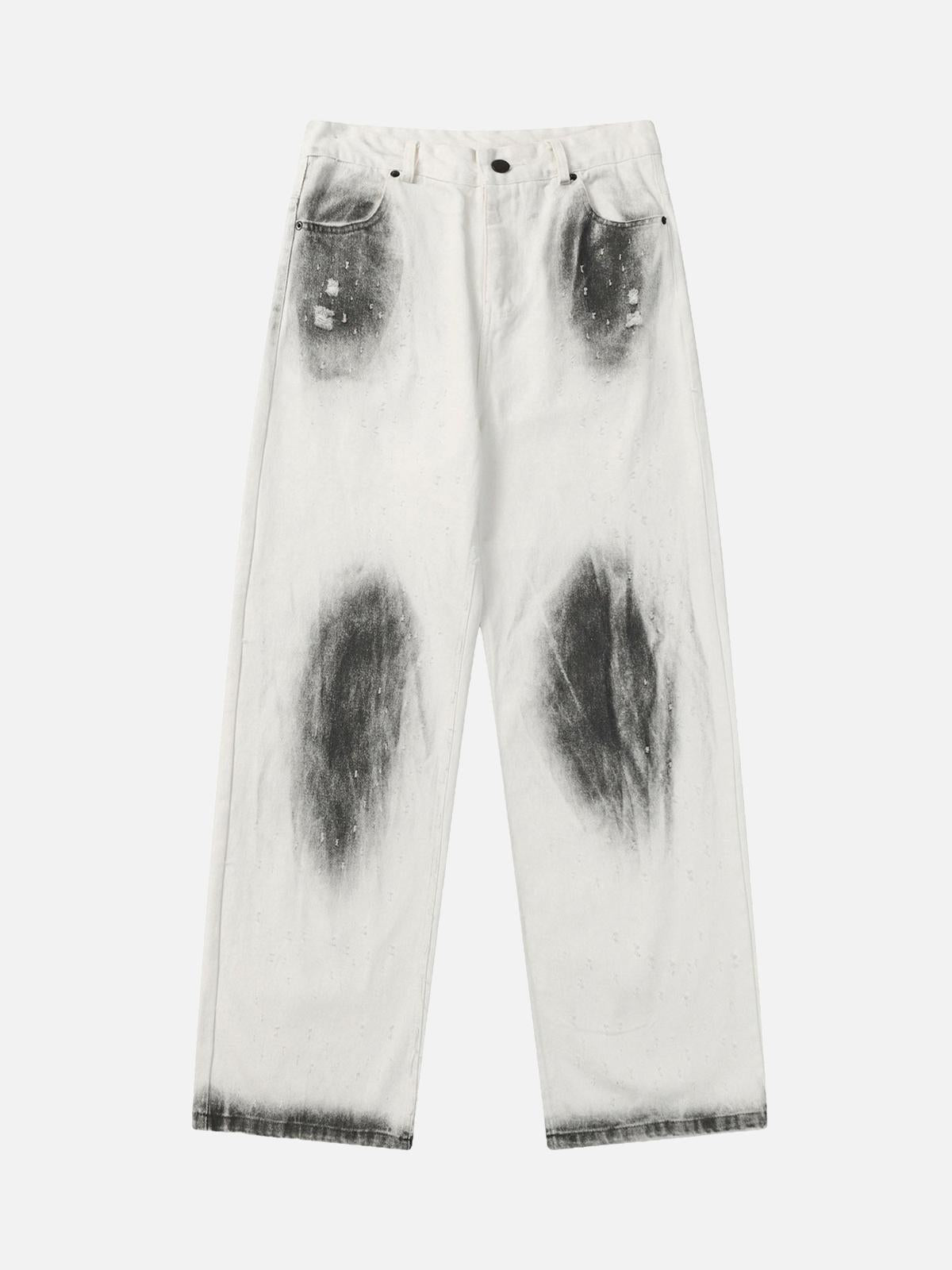 Defy convention with these striking white jeans, where bold black splashes create an edgy, urban vibe that’s all about fearless expression. Crafted for a relaxed fit, they offer both comfort and attitude, easily pairing with your favorite streetwear staples. Available in S, M, L, and XL, these jeans are perfect for anyone ready to redefine their y2k outfit game. Embrace the raw texture and distinctive design, and let your style speak volumes.