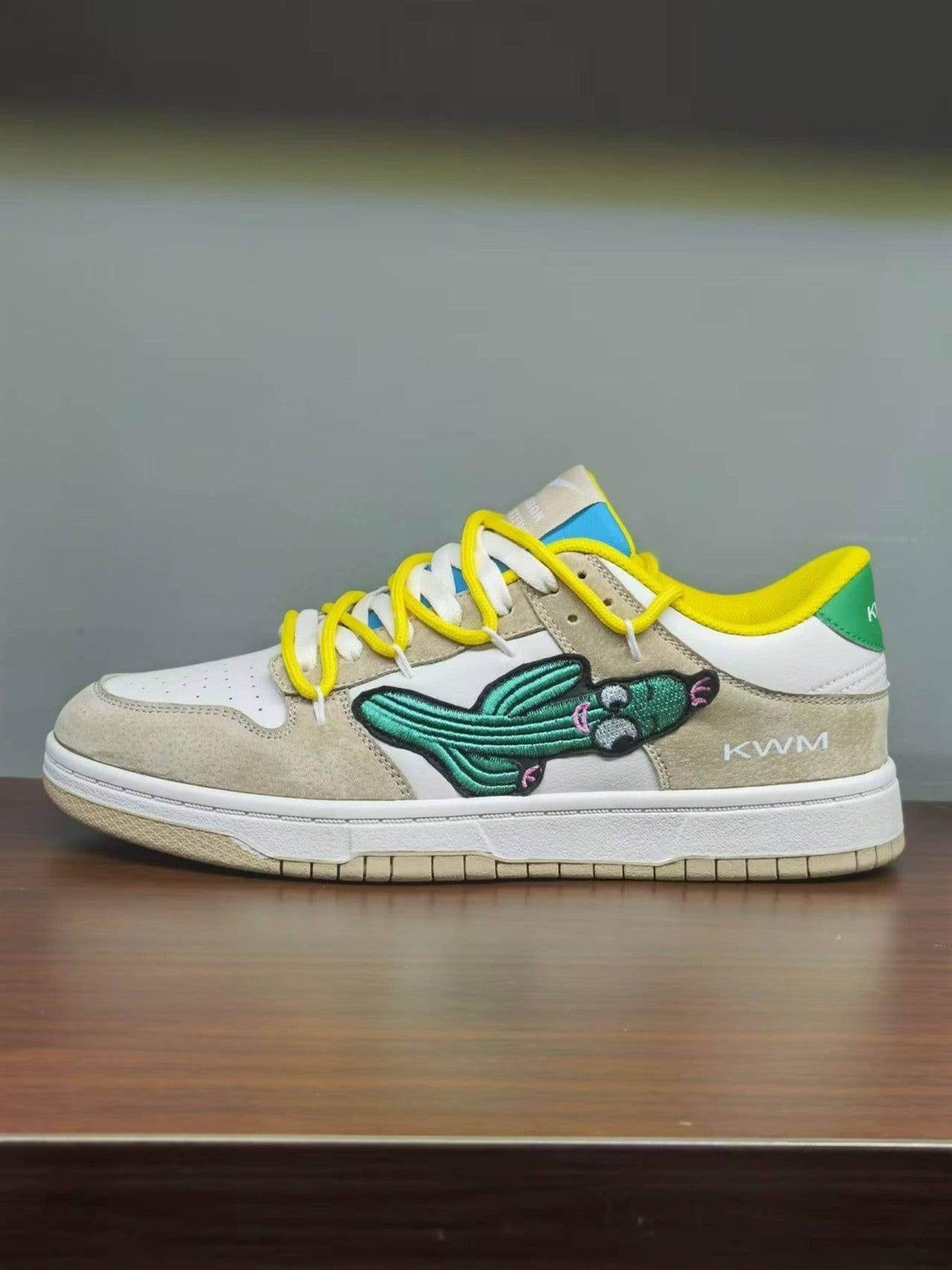 When your kicks tell a story, every step becomes a statement. These sneakers fuse bold, vivid embroidery with a versatile beige canvas, perfectly accentuated by pops of electric yellow and deep green. The dynamic mix of textures effortlessly complements the playful design, making them a staple for those who dare to redefine streetwear fashion. With sizes ranging from 36 to 44, these sneakers provide a snug, comfortable fit for all-day adventures. Pair them with your favorite y2k outfits or create fresh outfit ideas that inspire. Take a step into a world where style meets attitude.