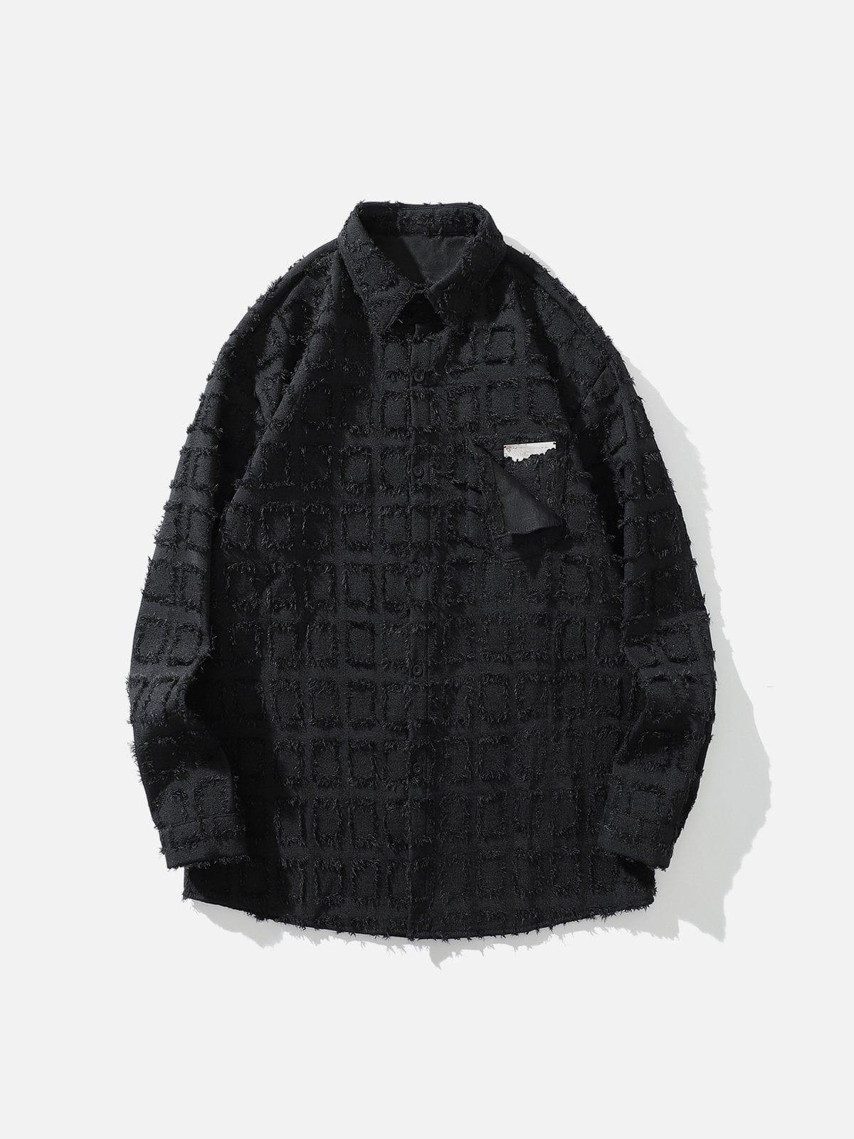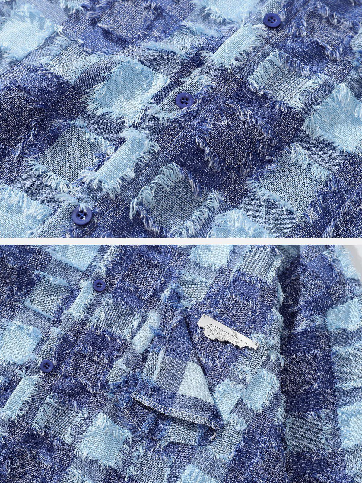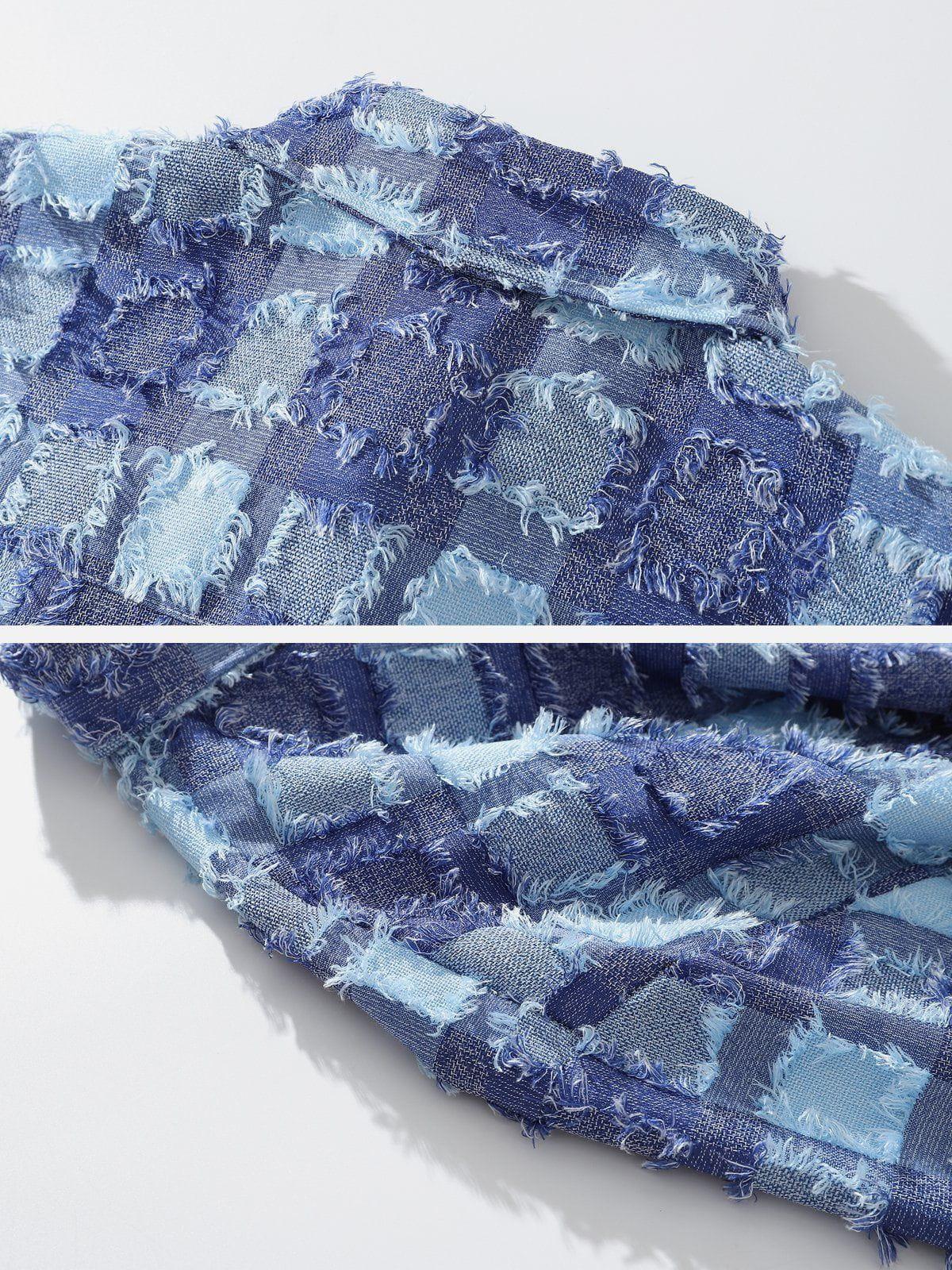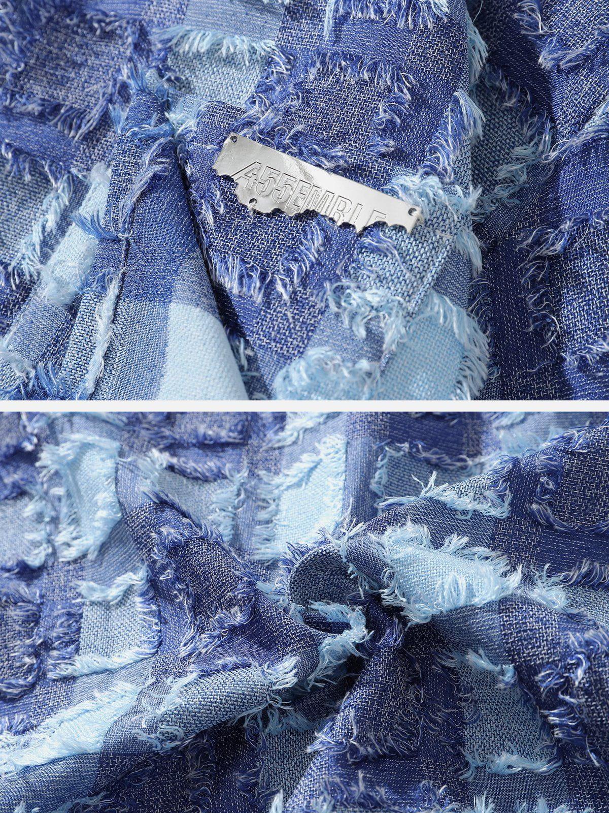 Break boundaries with this textured plaid masterpiece that screams urban edge and bold style. The frayed fabric in shades of deep and light blue creates a dynamic visual impact, perfect for those who embrace streetwear fashion with a twist. Available in sizes S through XL, this piece offers a relaxed fit that effortlessly combines comfort with a rugged aesthetic. Pair it with your favorite black jeans or layer it over a graphic tee for the ultimate Y2K outfit inspo. Dive into a new realm of fashion and redefine your wardrobe’s limits.
