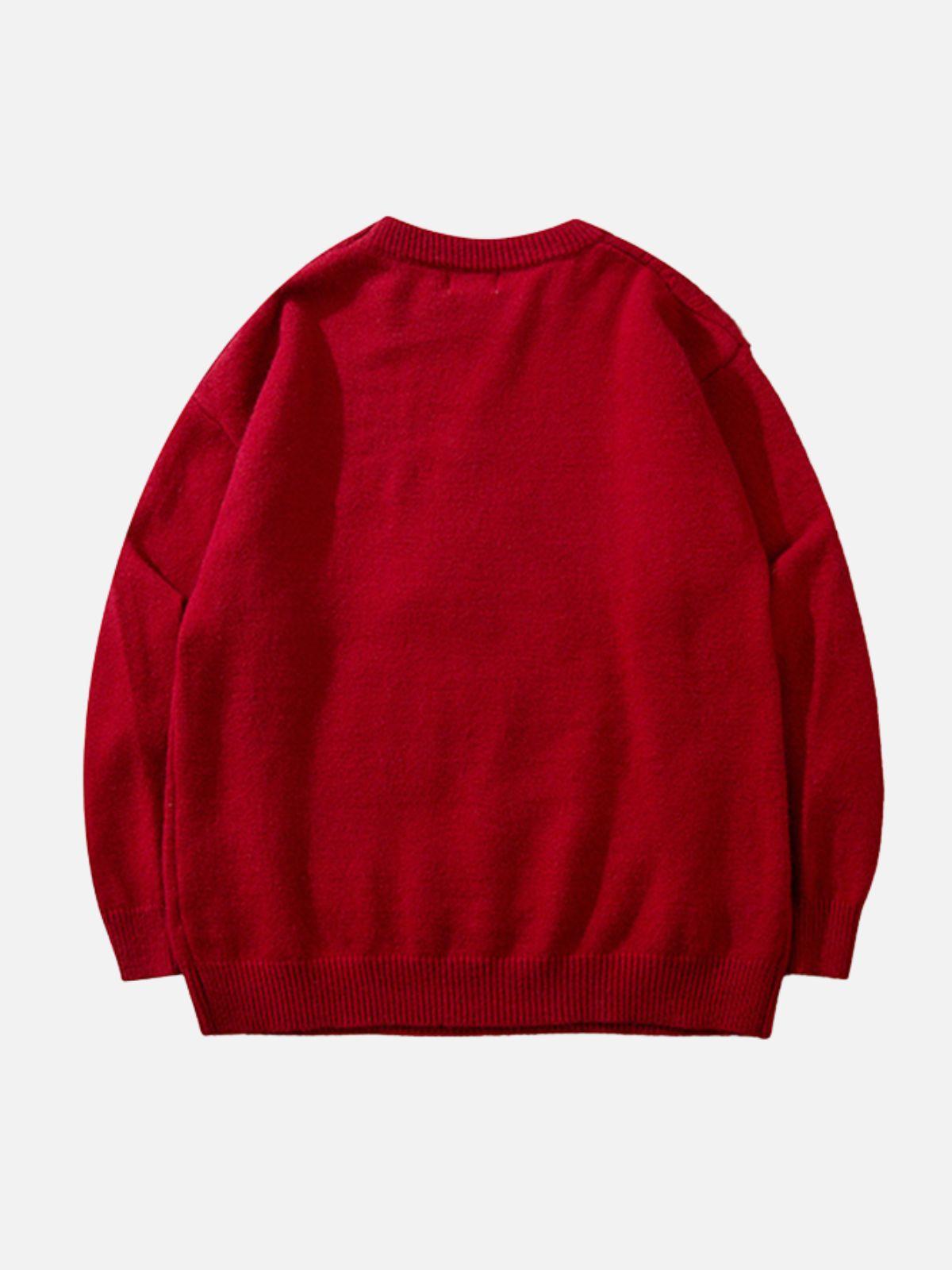 Break away from the ordinary with a sweater that embodies the spirit of the season and the streets. This vibrant red canvas is adorned with a whimsical Christmas tree motif, complete with playful candy cane and gift box details that catch the eye. The textured cable-knit sleeves add a touch of depth, making it the perfect piece to layer over your favorite urban ensemble. Available in bold shades like apricot and black, and sizes ranging from S to XL, this sweater guarantees a comfortable fit for any streetwear fashion enthusiast. Pair it with distressed jeans and high-tops for an outfit that speaks volumes without saying a word. Gear up for the festivities and let your style shine.