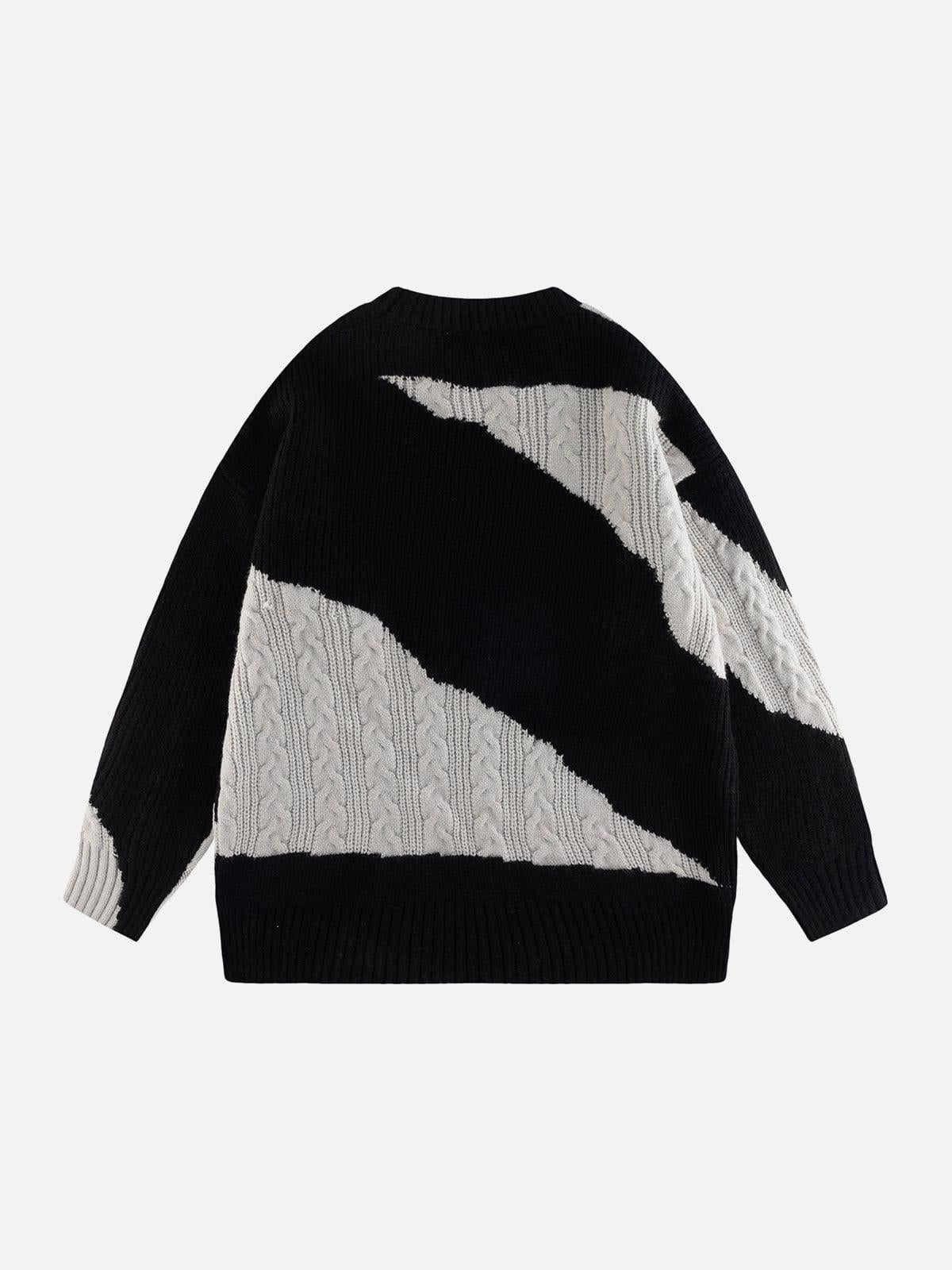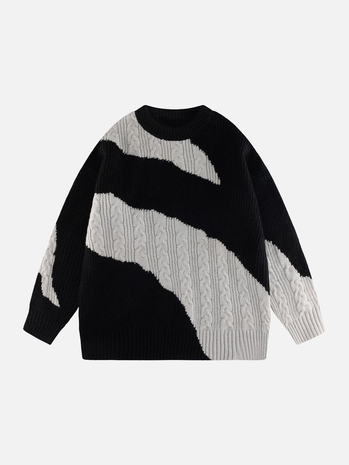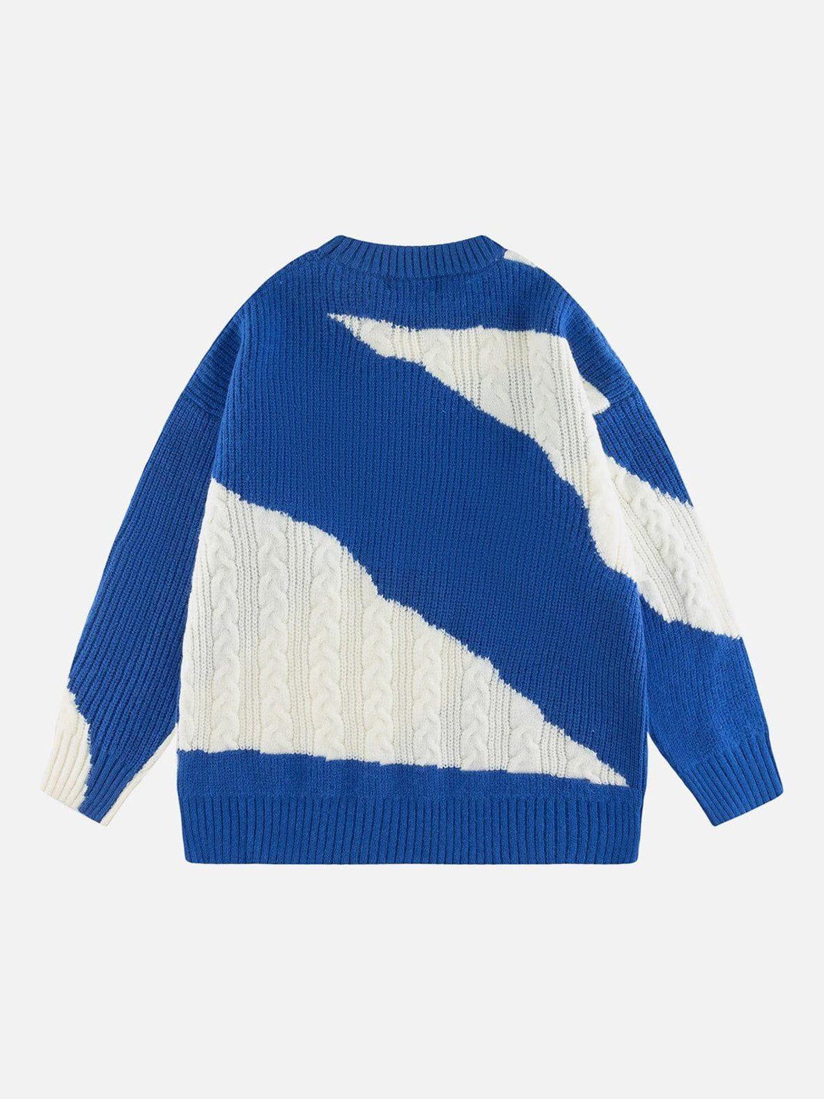 Defy the ordinary with this vibrant blue and white sweater that fuses bold, abstract patterns with a cozy, textured knit. The striking wave design flows effortlessly across the fabric, making it a standout piece in any urban wardrobe. Crafted for comfort, this sweater offers a relaxed fit that layers perfectly over your favorite streetwear essentials. Available in versatile sizes S through XL, it’s ideal for those seeking fresh outfit ideas that push the boundaries of streetwear fashion. Slip into this piece and redefine your look with confidence.