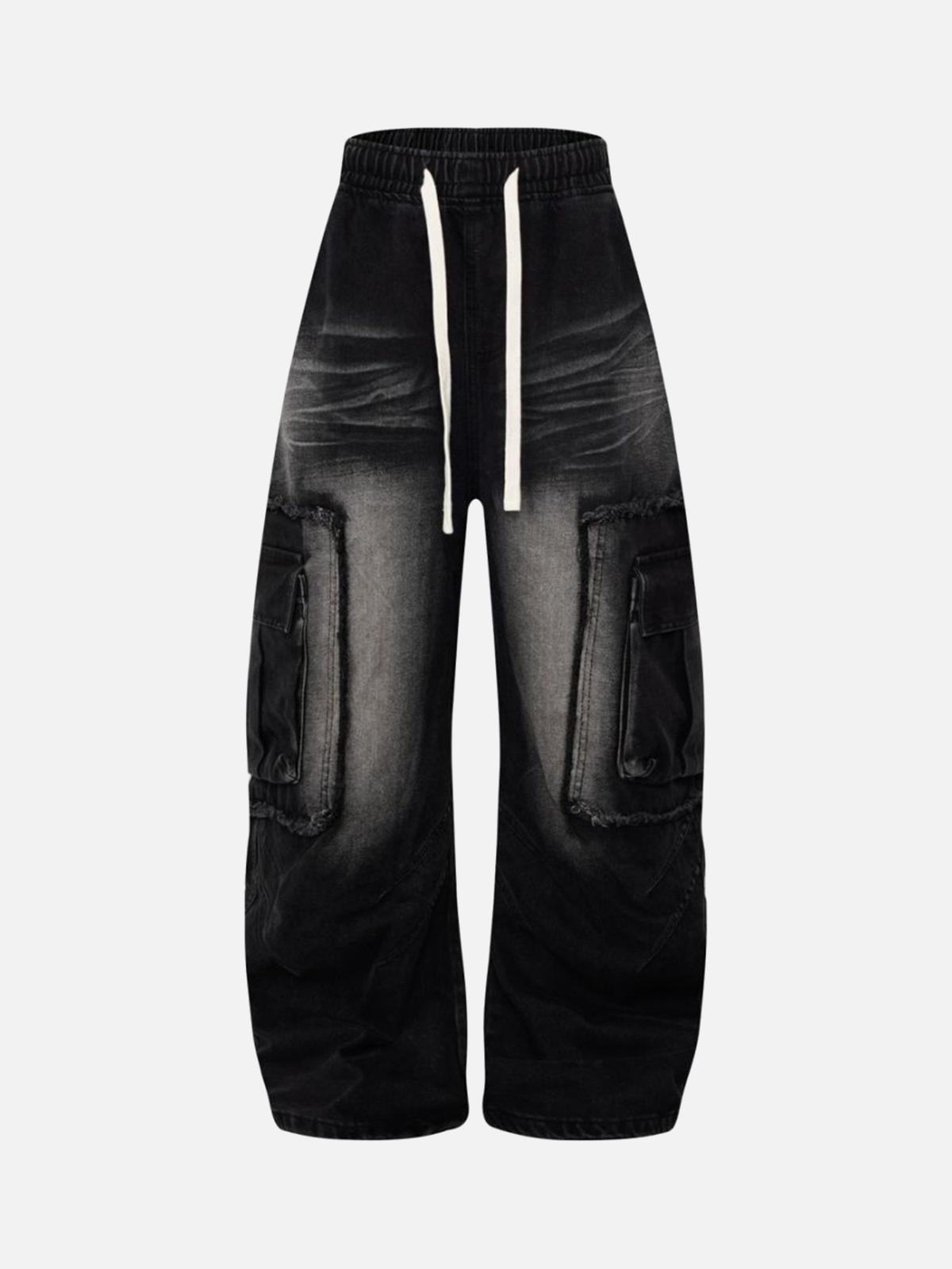 Concert Outfit Raw Edge Cargo Drawstring Barrel Jeans