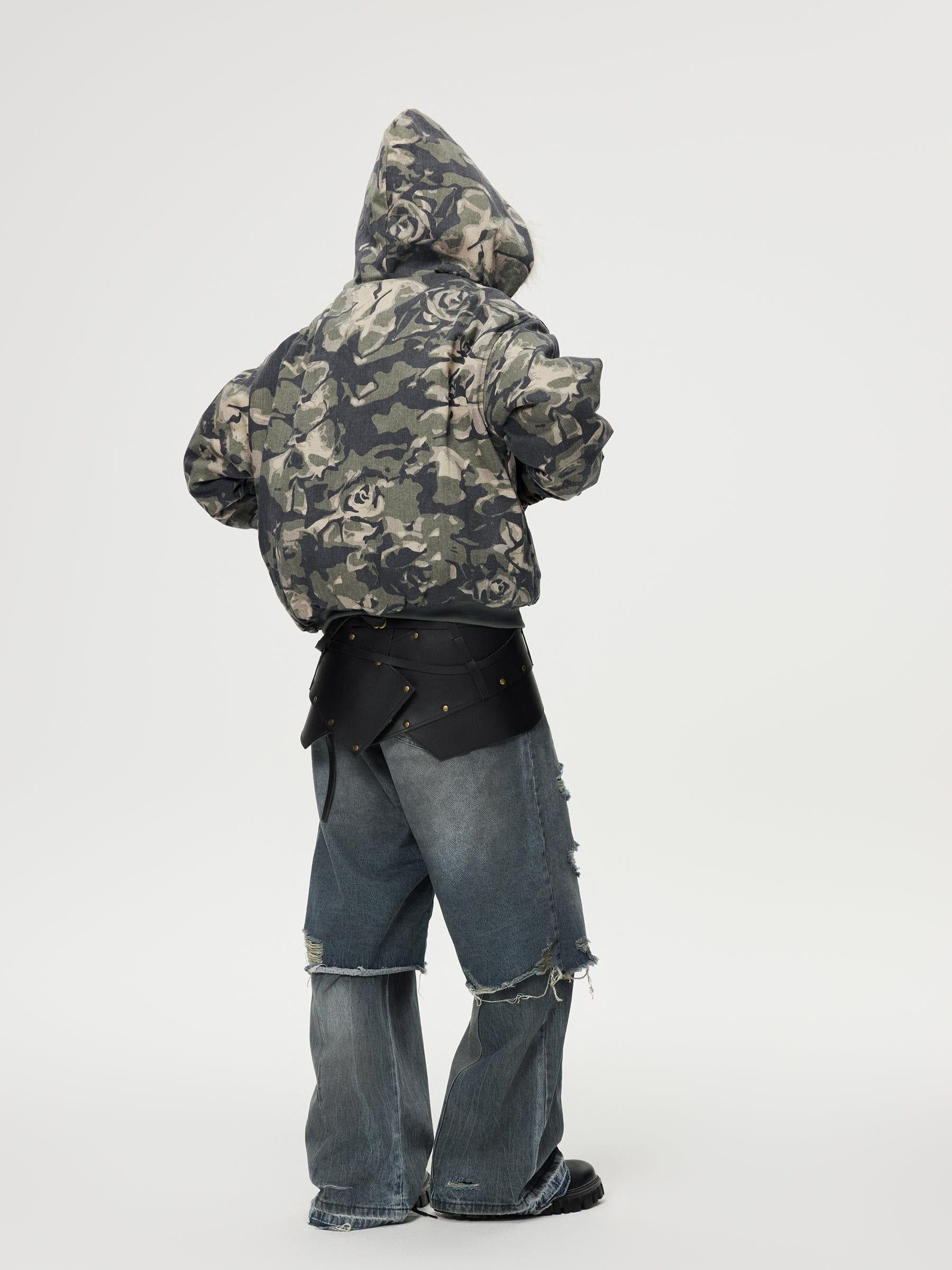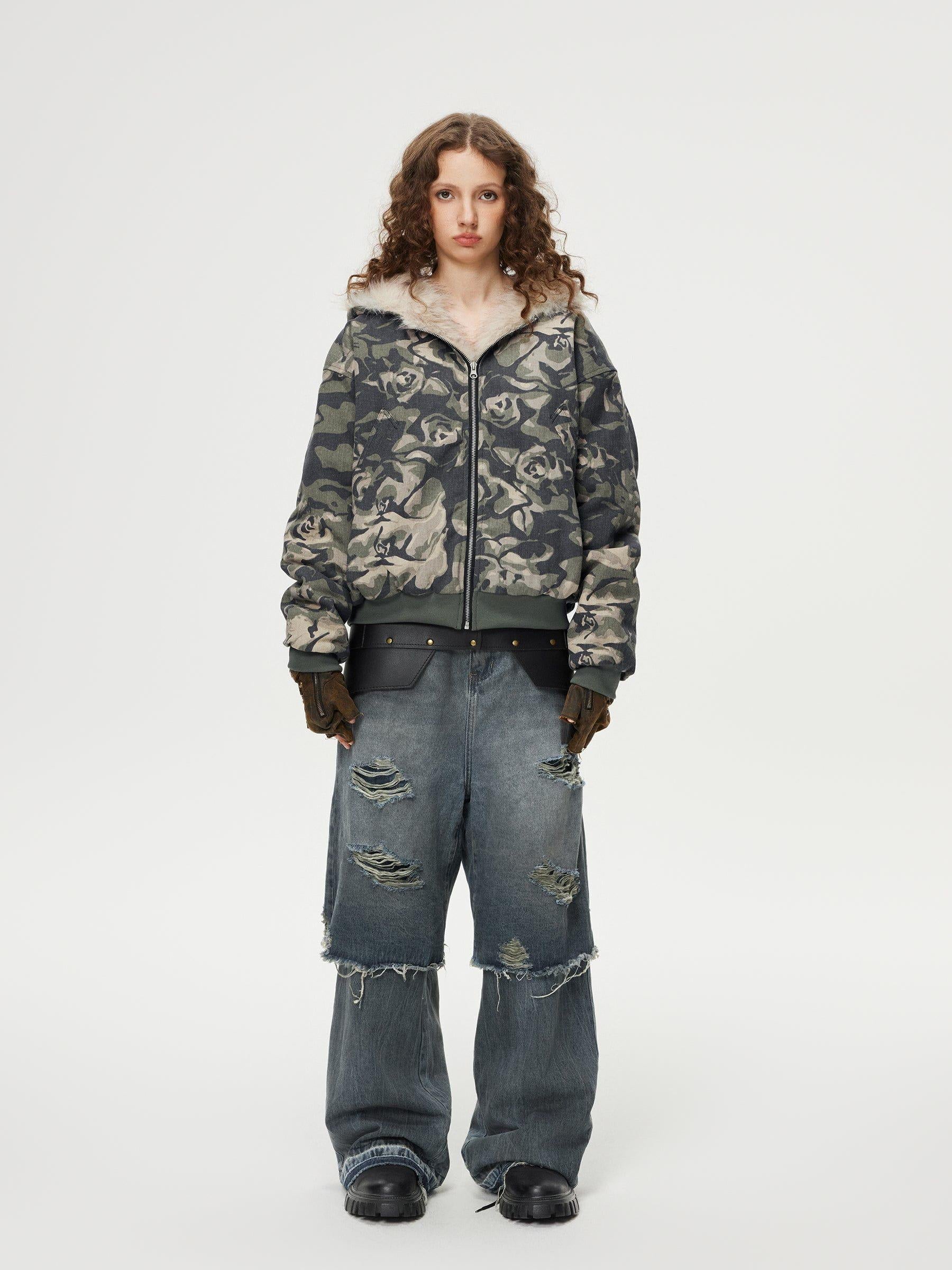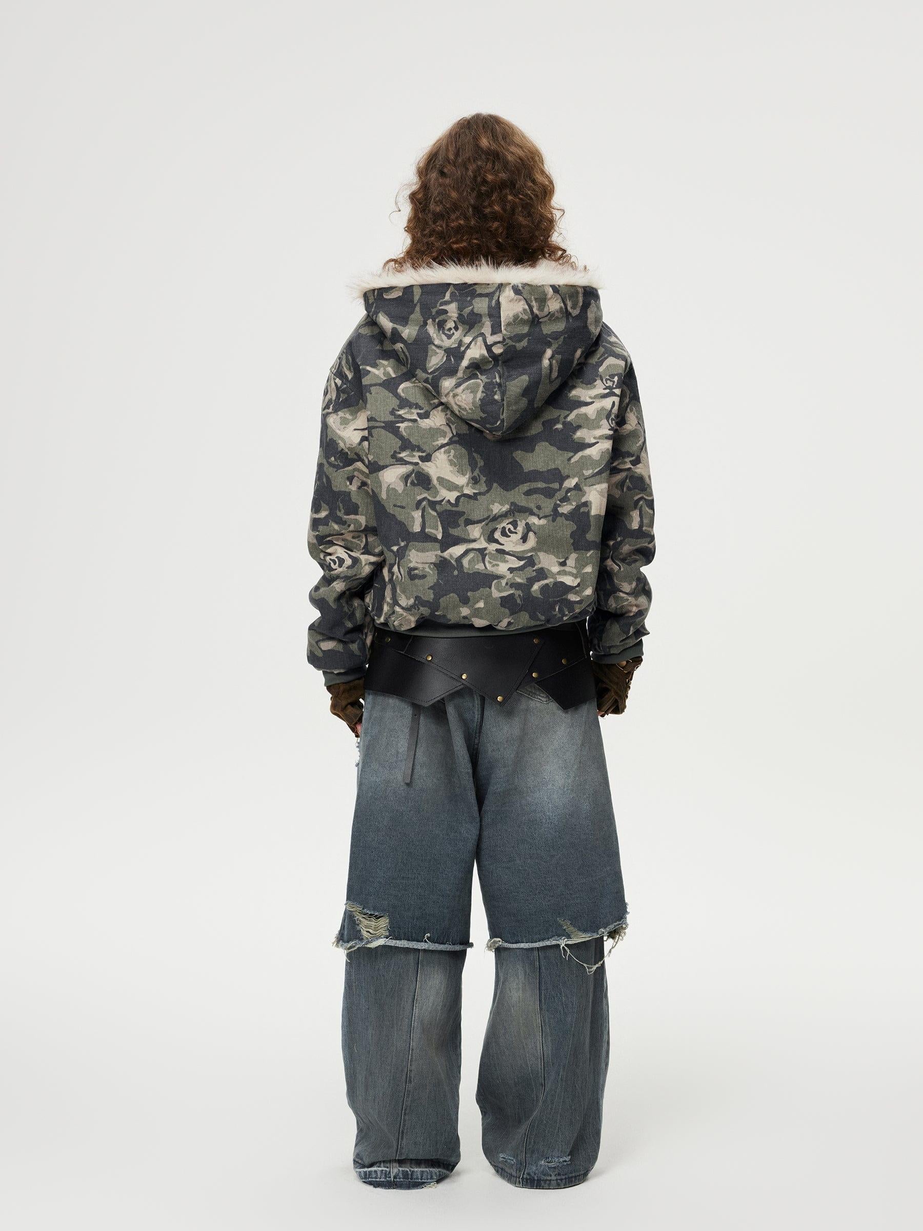 Redefine your streetwear fashion game with this bold urban essential. The jacket commands attention with its striking camouflage pattern, seamlessly blending shades of blue and gray to create a visual masterpiece. Crafted for those who embrace the edgy side of style, its plush faux fur collar adds a touch of luxury, contrasting perfectly against the rugged exterior. Designed in a versatile one-size fit, this piece offers both comfort and confidence, making it an easy choice for diverse outfit ideas. Pair it with distressed jeans or layer over a sleek hoodie to complete your y2k-inspired look. Gear up and make every street your runway.