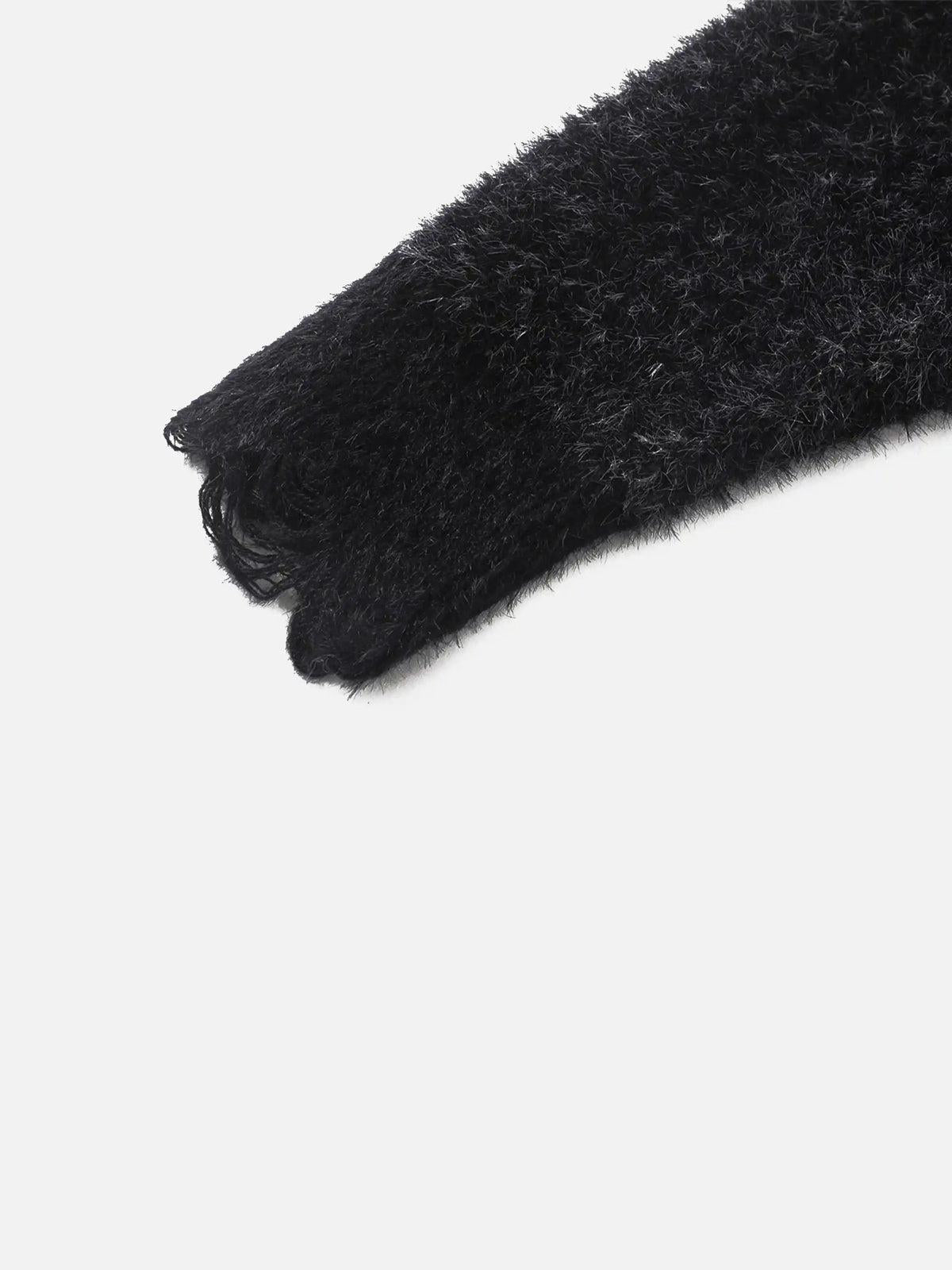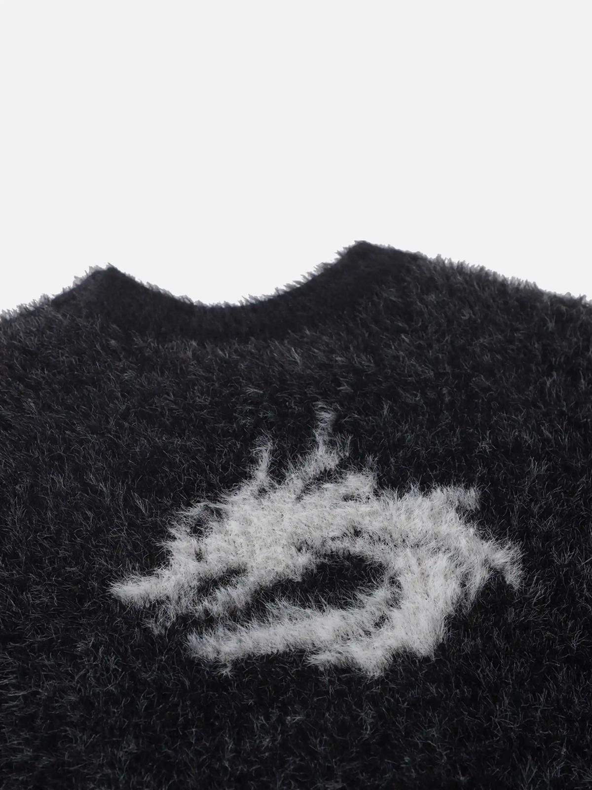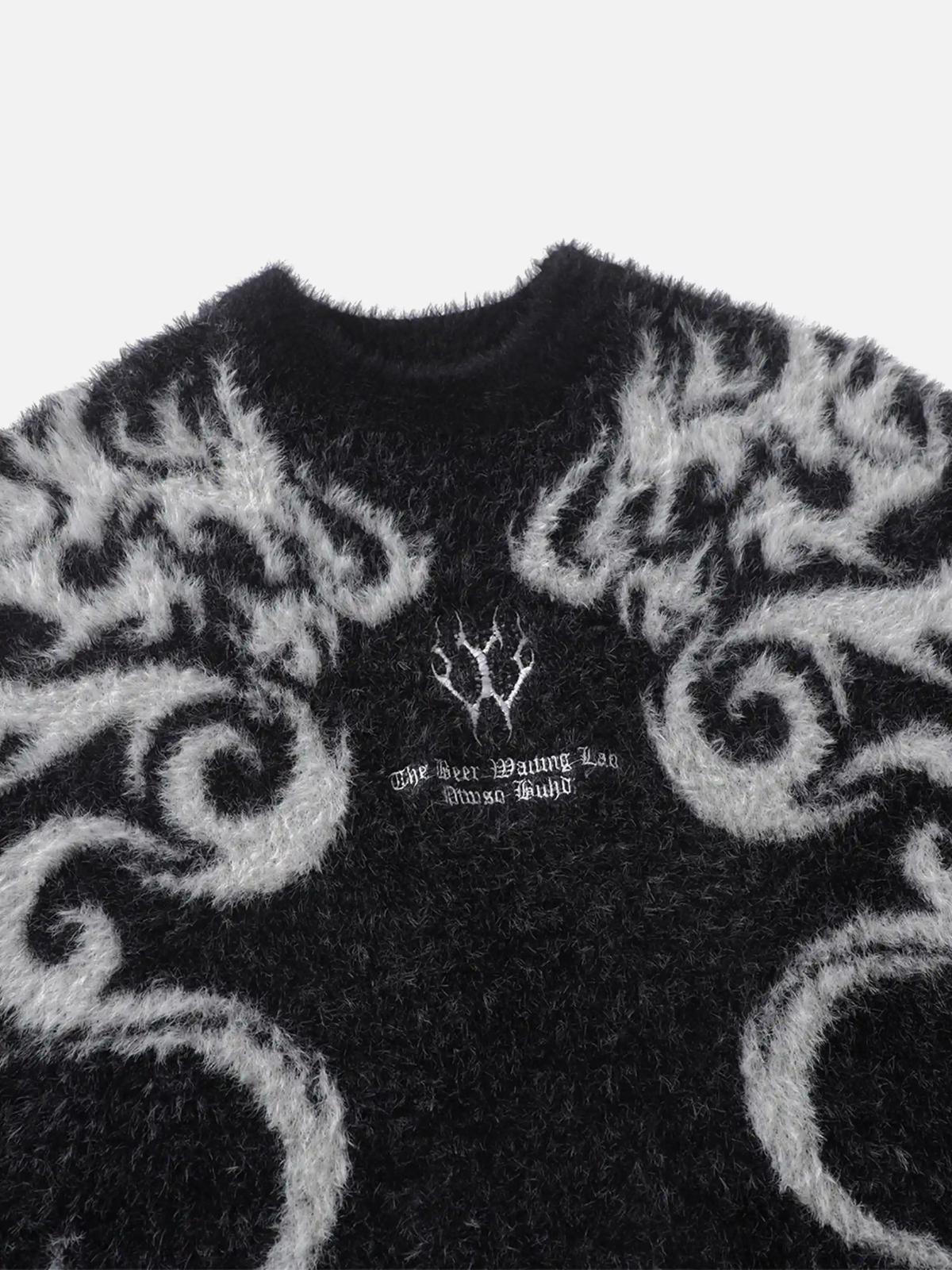 Unleash your inner rebel with this edgy black sweater, where swirling gray patterns collide with a bold, textured design. The intricate detailing offers a unique twist on streetwear fashion, making it a standout piece for any urban explorer. Available in sizes ranging from S to XXL, this sweater embraces a relaxed fit that promises comfort without sacrificing style. Pair it with distressed jeans or layer it over a crisp tee for outfit inspo that turns heads. Embrace the vibe and elevate your y2k outfits with a touch of modern flair.