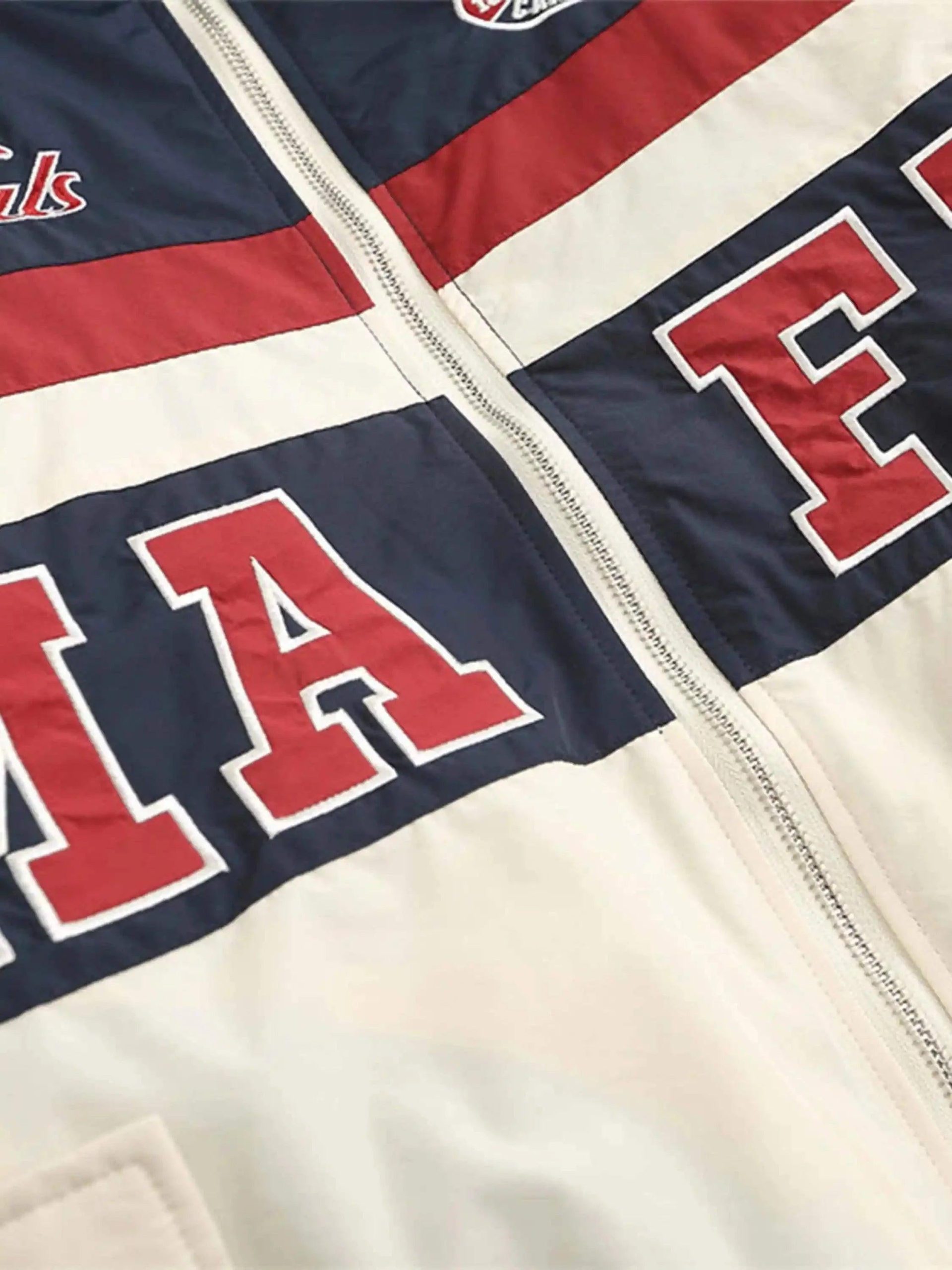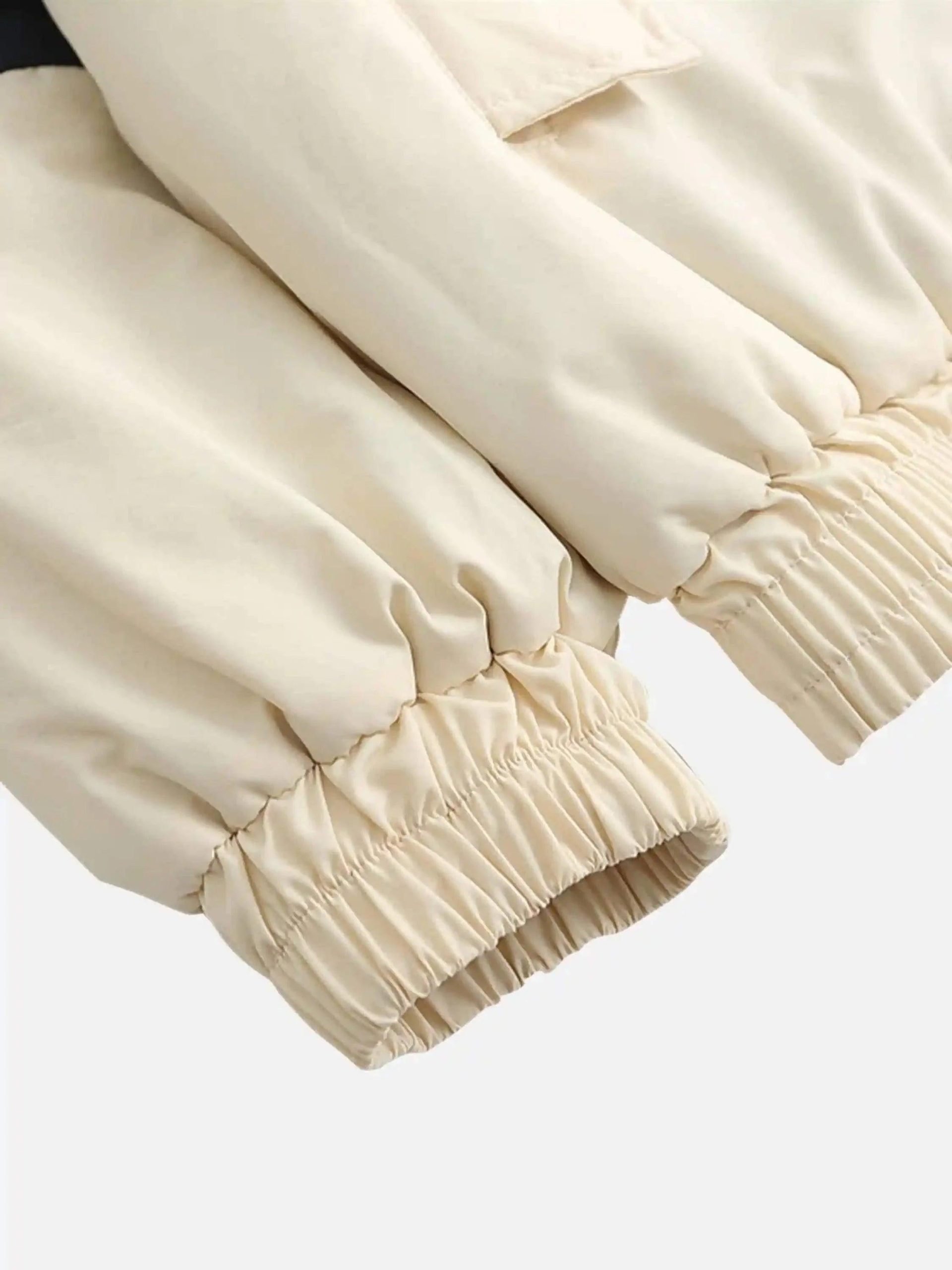 Break the mold with a jacket that screams urban cool, blending bold navy and cream hues with striking red accents that command attention on any street. The oversized fit in sizes M, L, and XL ensures a relaxed vibe while keeping you snug and stylish. The high collar and elastic cuffs add an edge, perfect for pairing with your favorite y2k outfits. Whether you’re hitting the city or cruising with friends, this jacket is your go-to for effortless outfit ideas that turn heads.