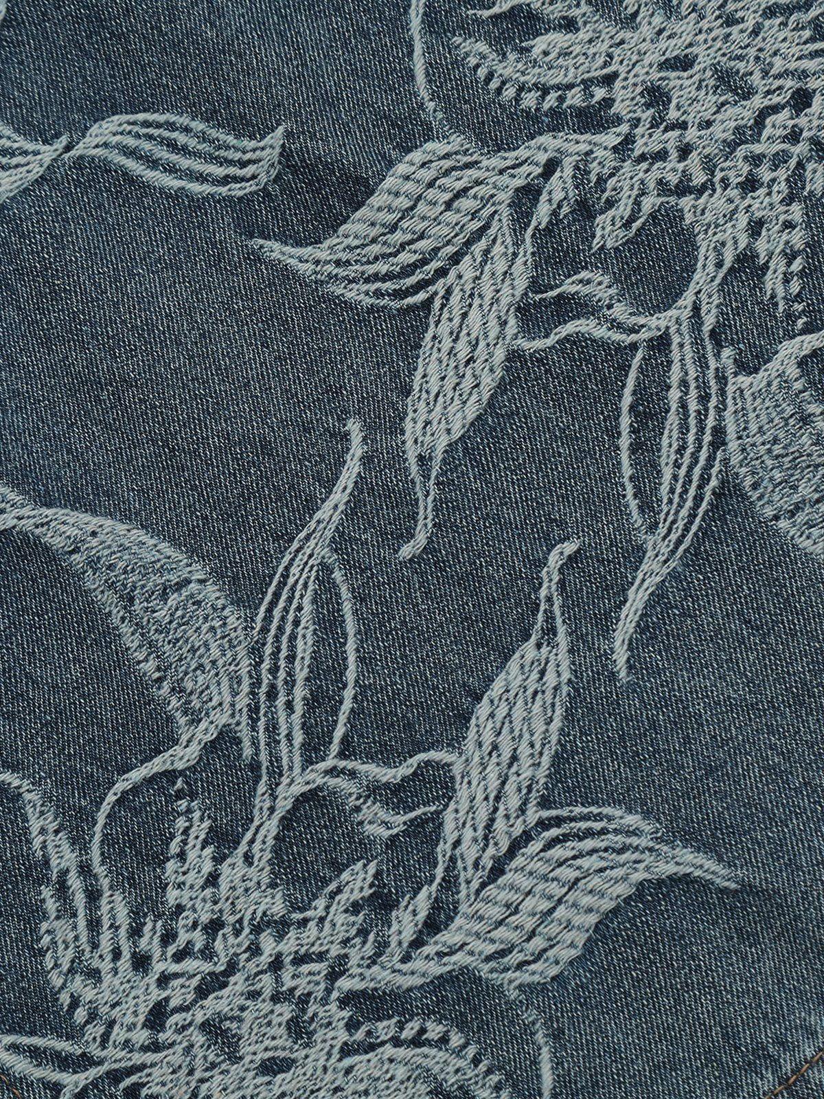 Transform your summer wardrobe with these edgy blue shorts, where bold floral patterns meet the rugged texture of premium denim. The intricate design weaves a story of urban flair and casual elegance, making these shorts a standout piece for any summer outing. With a relaxed fit that flows effortlessly, they’re perfect for all-day comfort and style. Available in one size, these shorts are versatile enough to pair with your favorite streetwear staples. Step up your summer fashion game and let your style speak volumes.