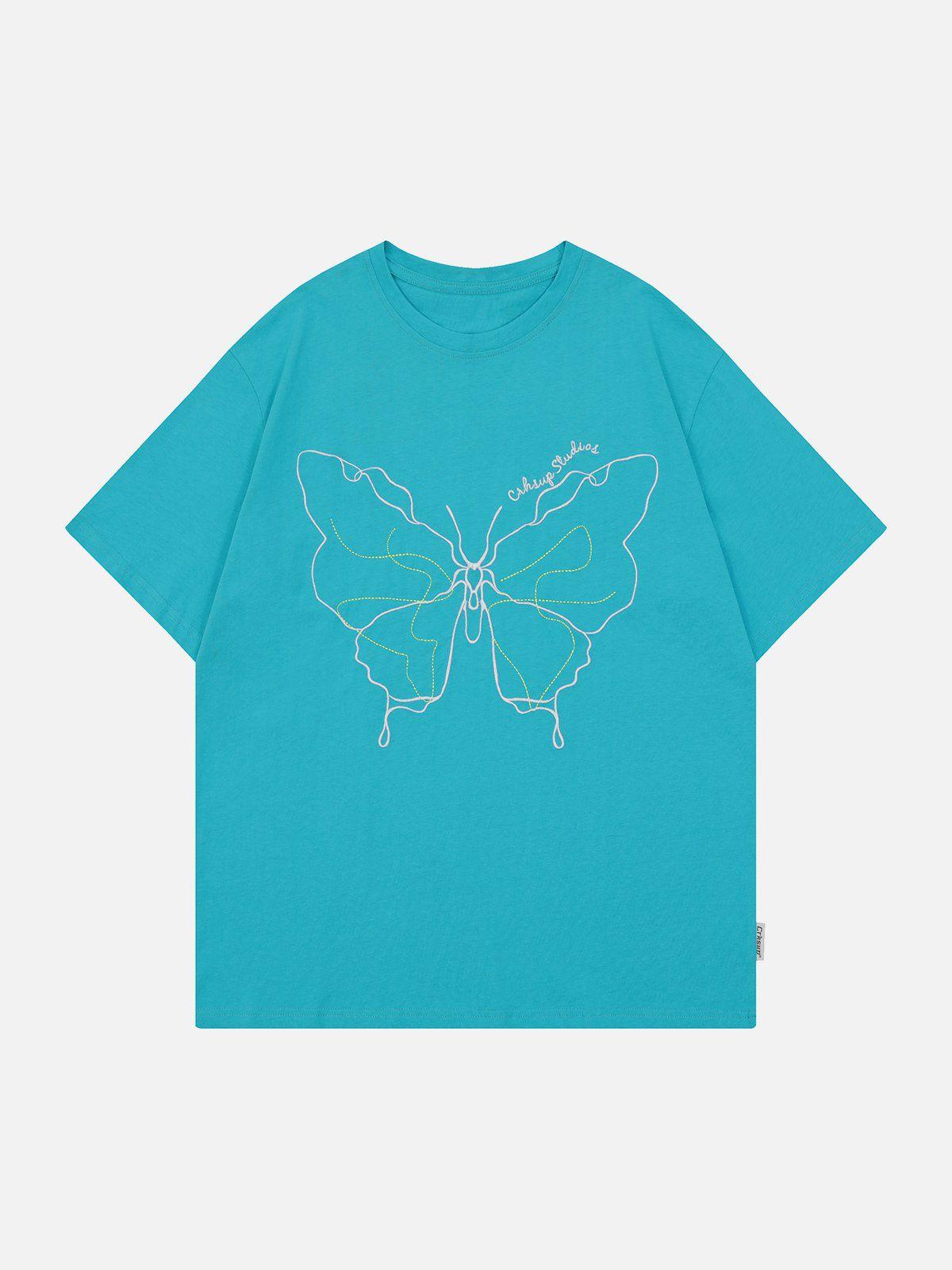 Transform your summer style with this striking tee, where minimalism meets bold expression. The delicate butterfly outline, sketched in black and blue, dances across a crisp white canvas, bringing a touch of urban art to your wardrobe. Crafted for a relaxed fit, it drapes effortlessly, making it perfect for layering or standing alone as a statement piece. Available in sizes from S to L, this tee ensures a comfortable fit for every streetwear enthusiast. Whether you’re hitting the city streets or chilling at the park, elevate your summer fashion game effortlessly.