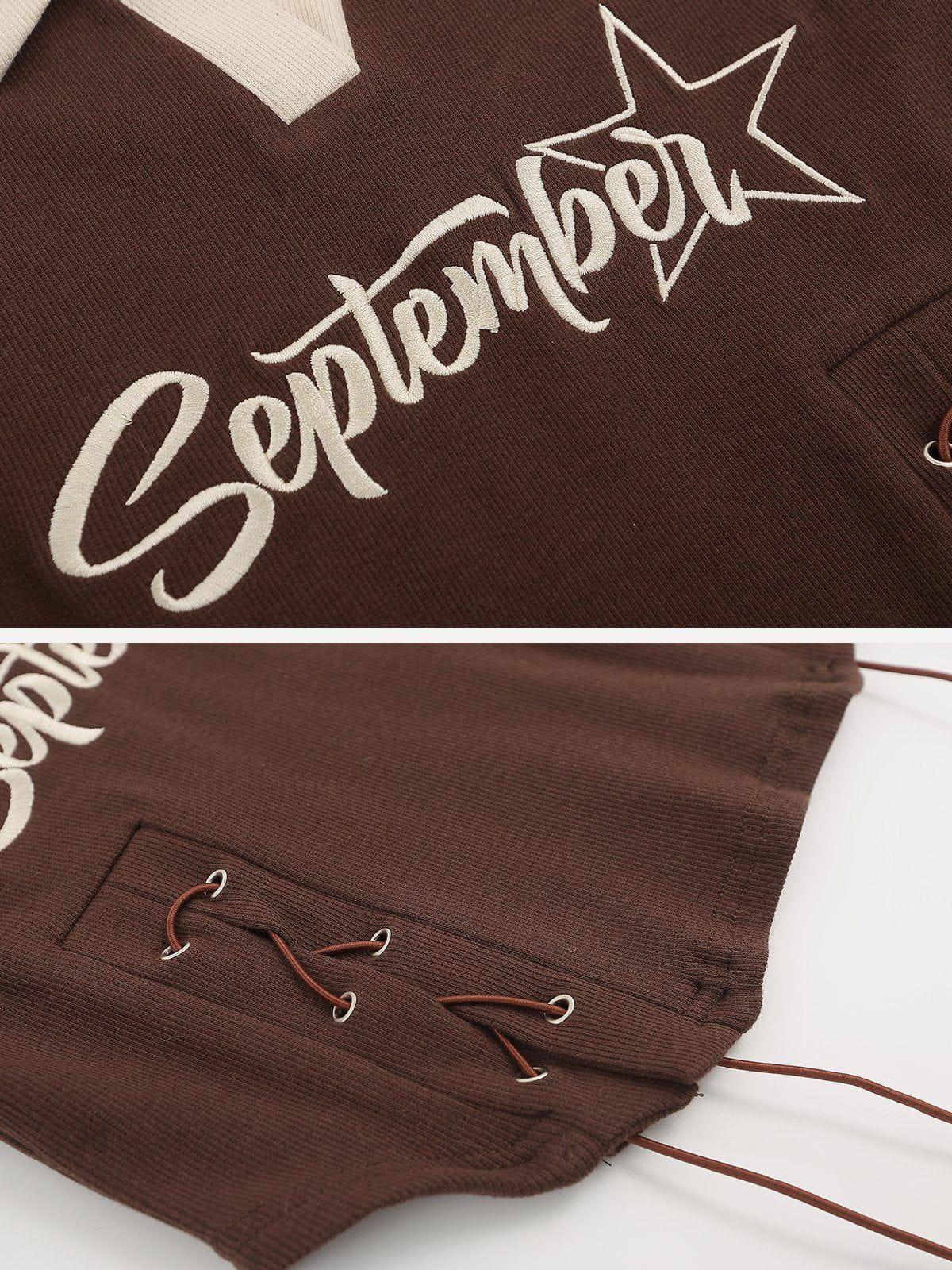 Stylish Concert Outfit: Embroidered Side Drawstring Fold-over Star Tee