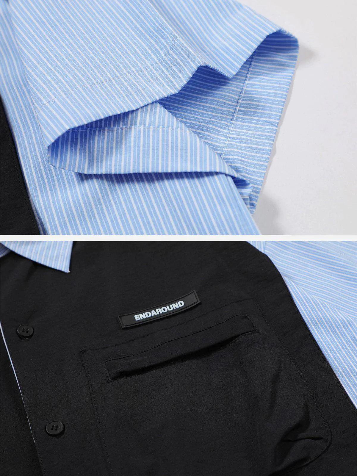 Break the mold with a shirt that blends classic pinstripe vibes with a daring streetwear twist. This bold piece marries a cool blue base with a striking black overlay, creating a layered look that’s as versatile as it is eye-catching. The textured contrast of soft fabric against rugged pockets adds depth, while the relaxed fit ensures it drapes effortlessly over any frame, available in sizes from S to XL for the perfect fit. Whether you’re diving into y2k outfits or need outfit inspo for your next urban adventure, this shirt is your go-to for redefining streetwear fashion. Pair it with your favorite sneakers and step into the spotlight.