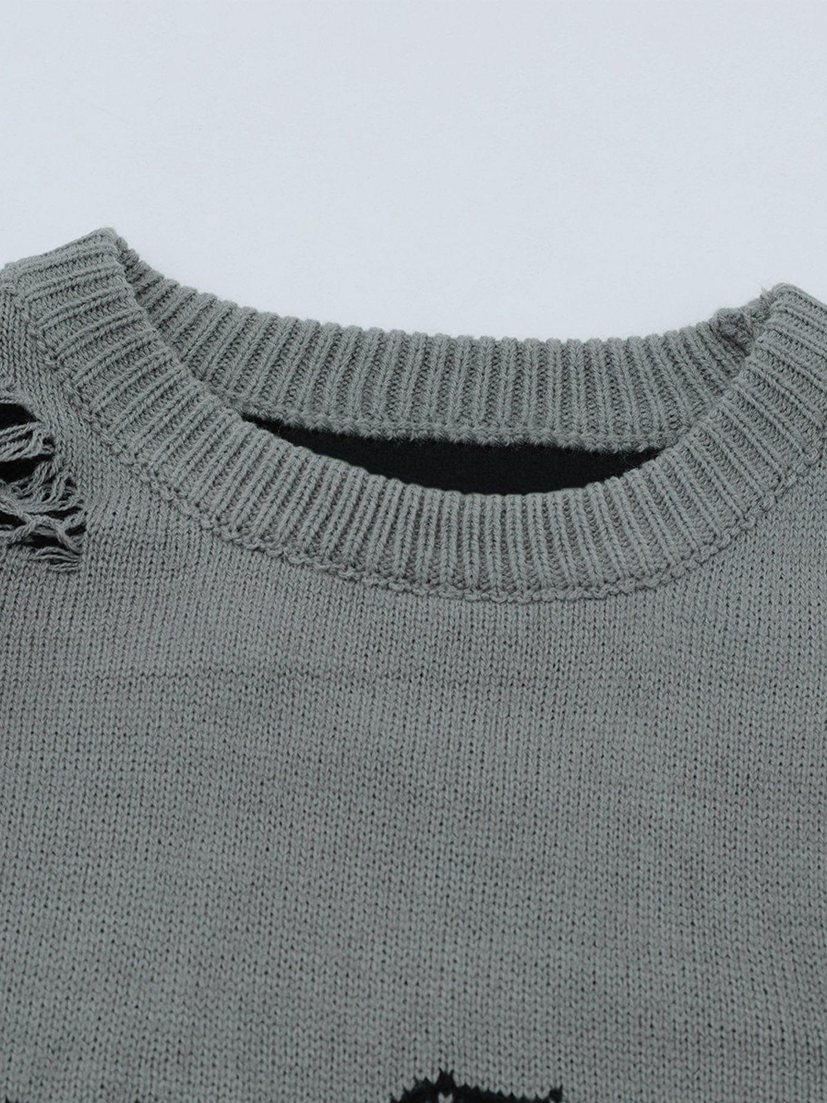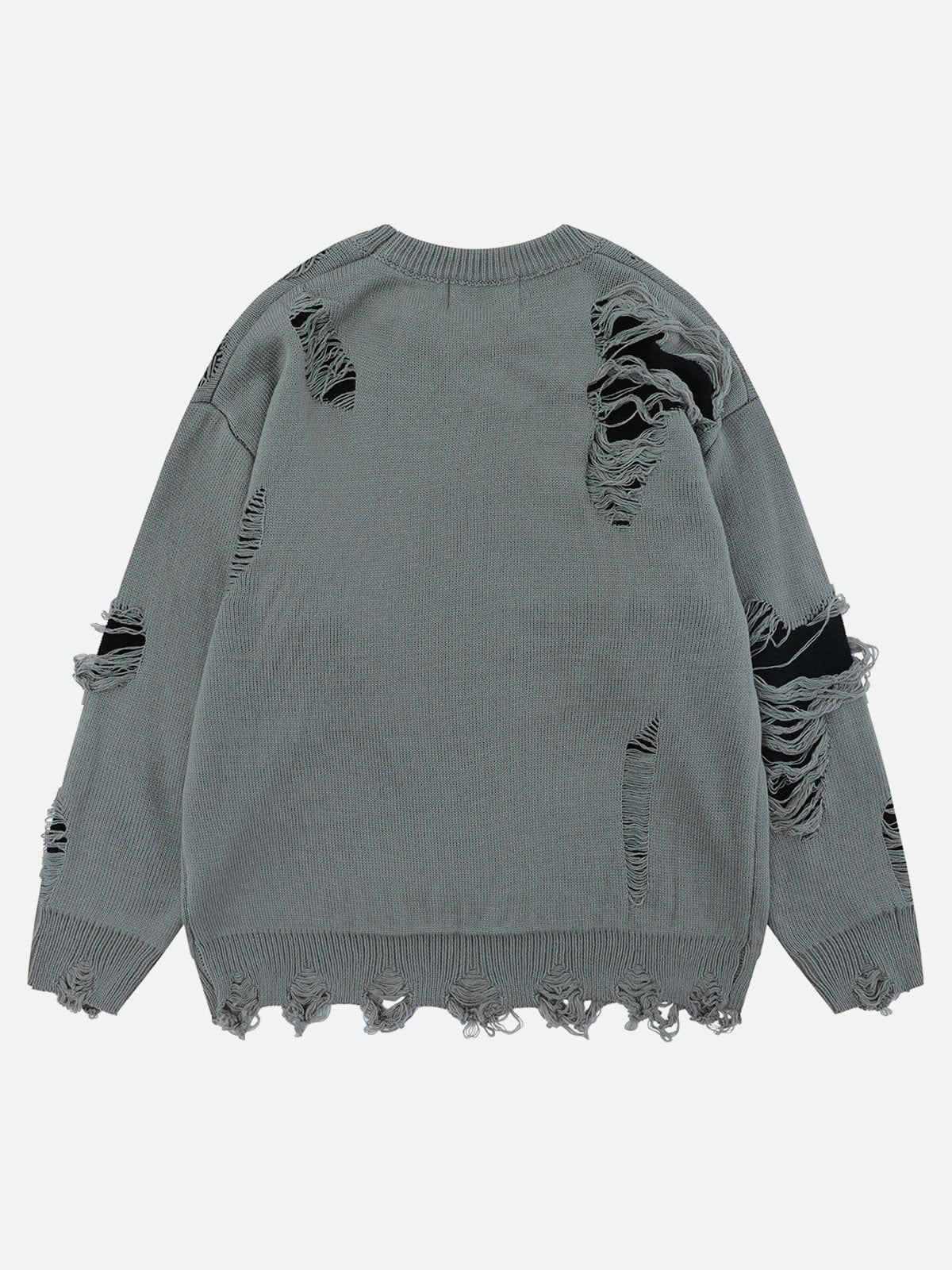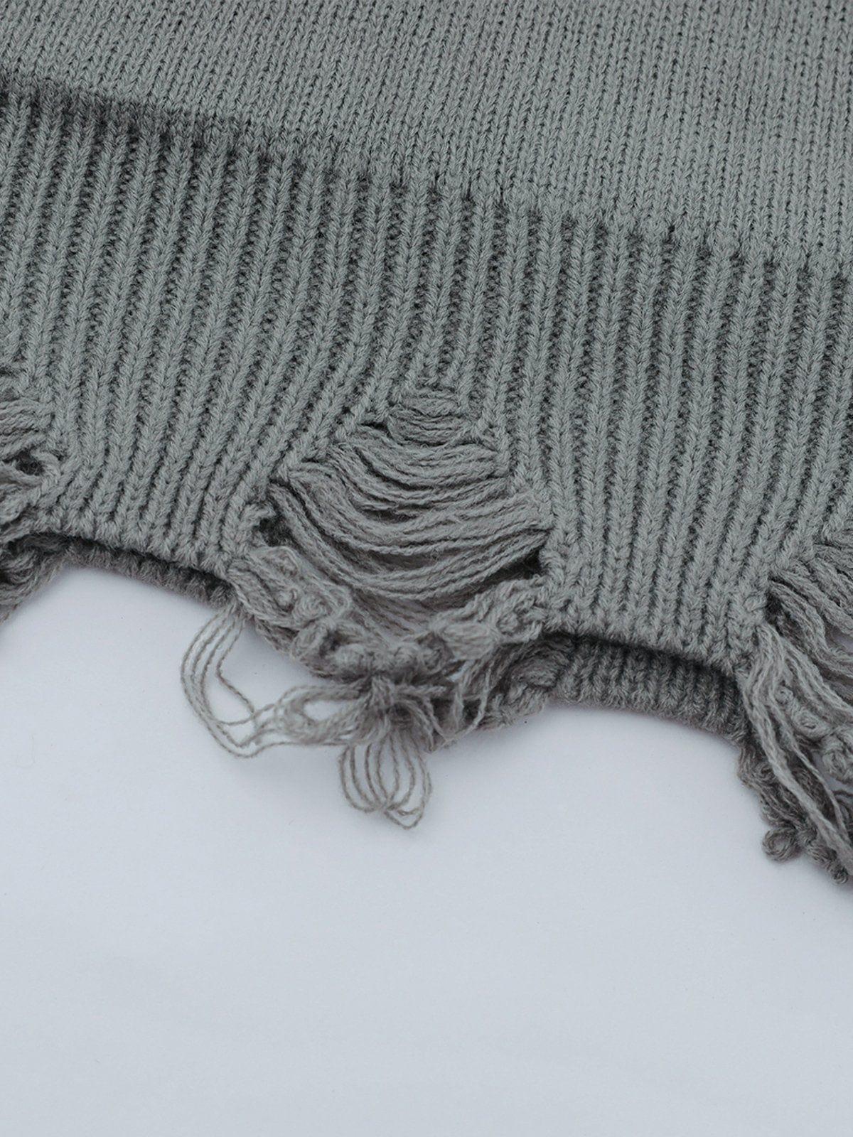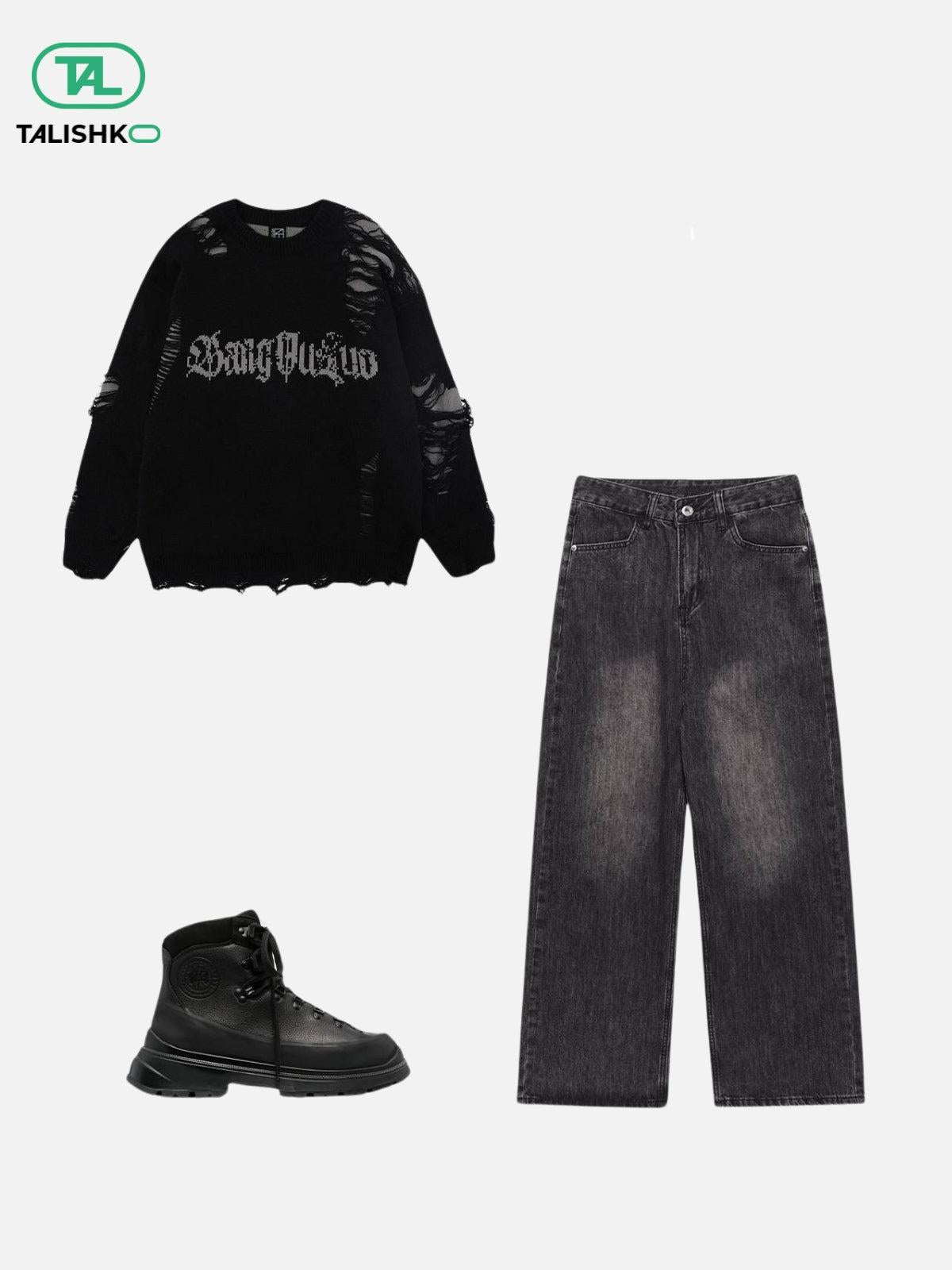 Embrace the unapologetic edge of modern streetwear with this distressed sweater that screams urban rebellion. The meticulously frayed edges and bold, gothic lettering across the chest create a raw texture that demands attention. Available in both a sleek black and a versatile gray, this piece offers size options from XS to L, ensuring the perfect fit for your unique style. Pair it with baggy jeans or layer it over a crisp tee for those ultimate y2k outfit vibes. Ready to redefine your streetwear fashion?