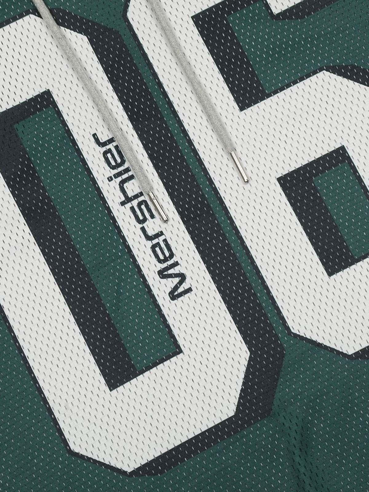 Go bold with a fusion of athletic edge and urban cool in this striking hoodie, where deep green mesh meets contrasting gray sleeves for a layered look that’s right on point. The oversized number print adds a vintage varsity vibe, perfect for those who love a nod to y2k outfits. Available in versatile M, L, and XL sizes, this piece is designed for those who embrace streetwear fashion with confidence. Pair it with joggers or your favorite jeans for effortless style, and let the city be your runway.