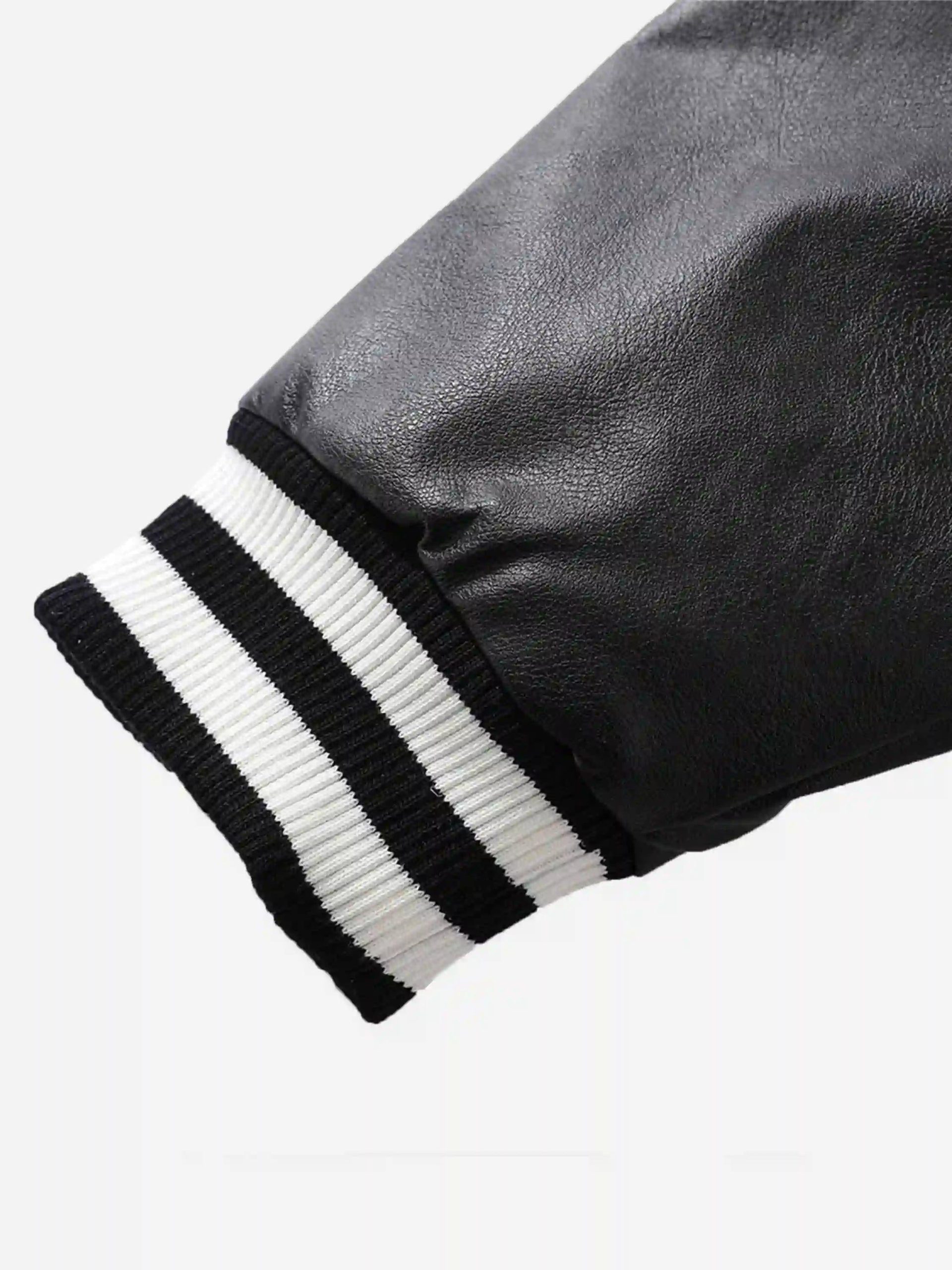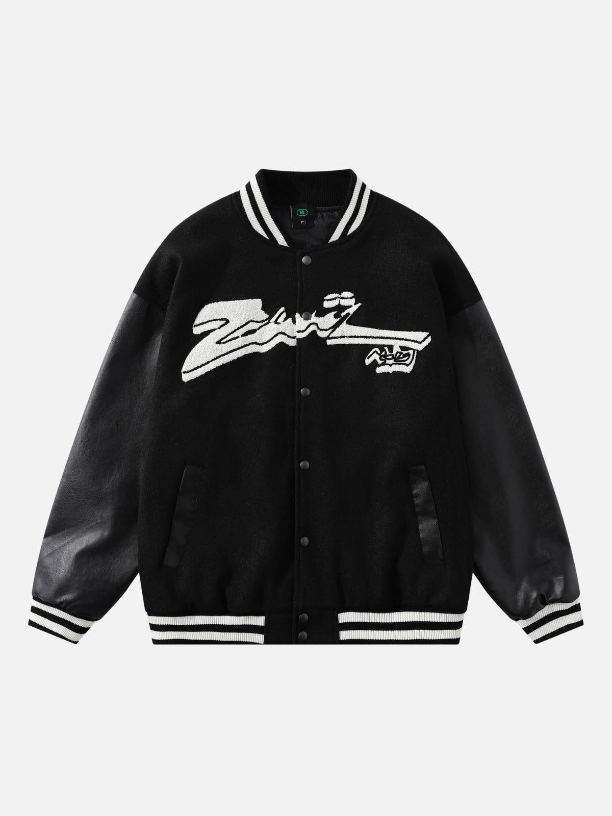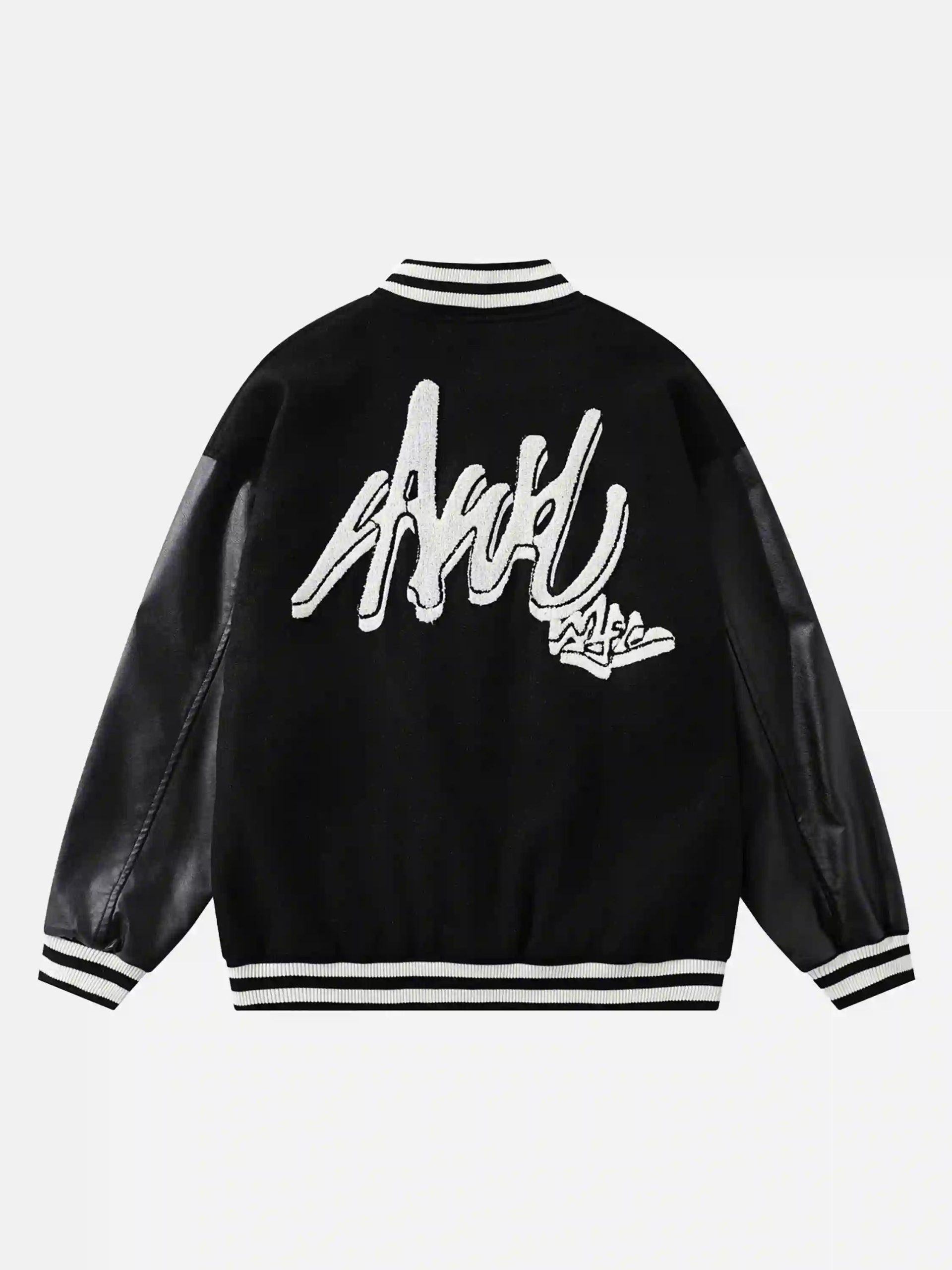 Break the mold with this varsity jacket that effortlessly merges classic vibes with a modern twist. The rich brown body pairs with sleek leather sleeves, creating a striking contrast that stands out in any urban landscape. With its bold, textured embroidery across the chest, this piece nods to vintage y2k outfits while keeping your style firmly planted in the now. Available in sizes M, L, and XL, it offers a comfortable fit for layering over your favorite streetwear essentials. Whether you’re hitting the city streets or looking for outfit ideas that push boundaries, this jacket is your go-to. Embrace the edge and redefine your streetwear fashion game.