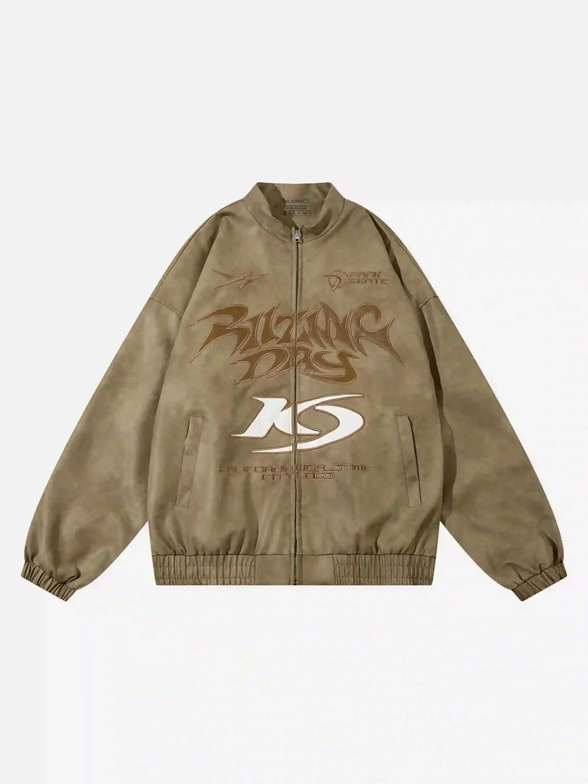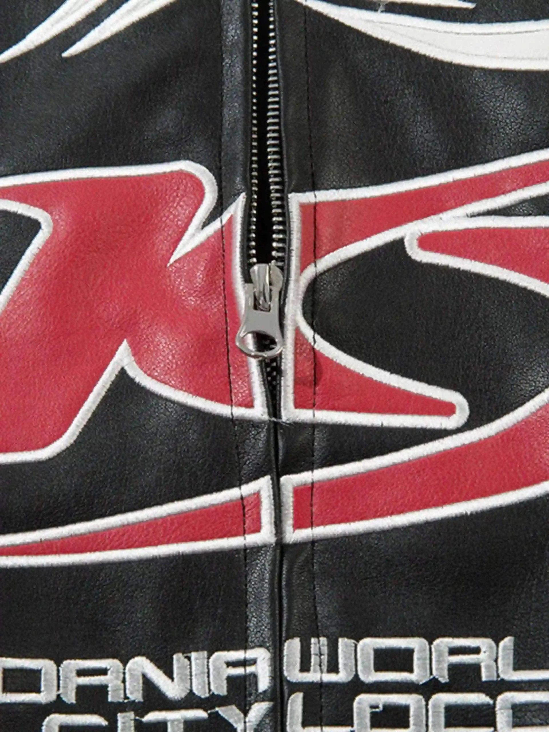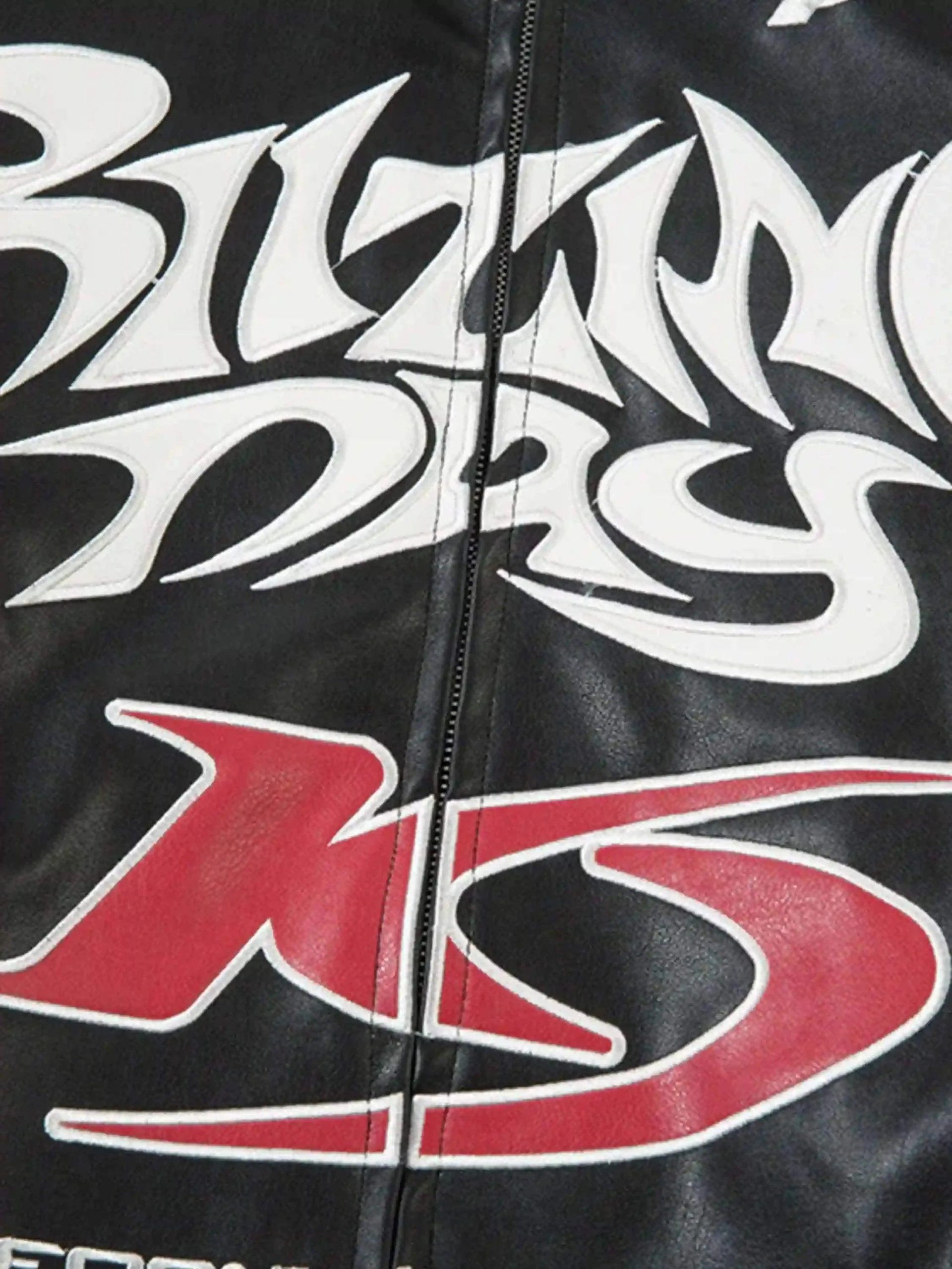 Gothic Concert Outfit: Alphabet Patch Racing Collar Jacket for Events