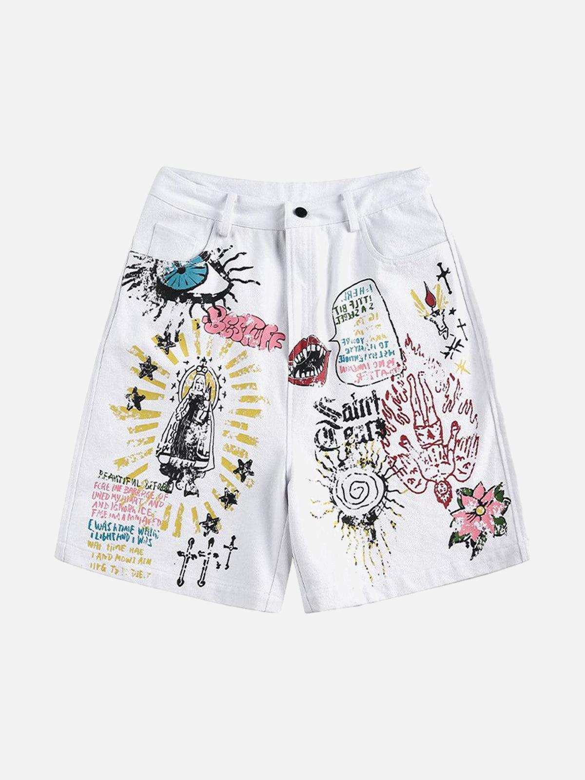 Turn your summer style into a canvas with these boldly expressive shorts, bursting with vibrant graphics and edgy illustrations. The crisp white fabric serves as the perfect backdrop for eye-catching splashes of color and street-inspired designs, ensuring you’re spotted from every angle. Crafted for those who dare to stand out, these shorts offer a comfortable fit available in sizes M, L, XL, and 2XL, making them an essential piece for your summer outfit. Pair them with a simple tee to let the art do the talking, and hit the streets with confidence. Ready to redefine your summer fashion game?