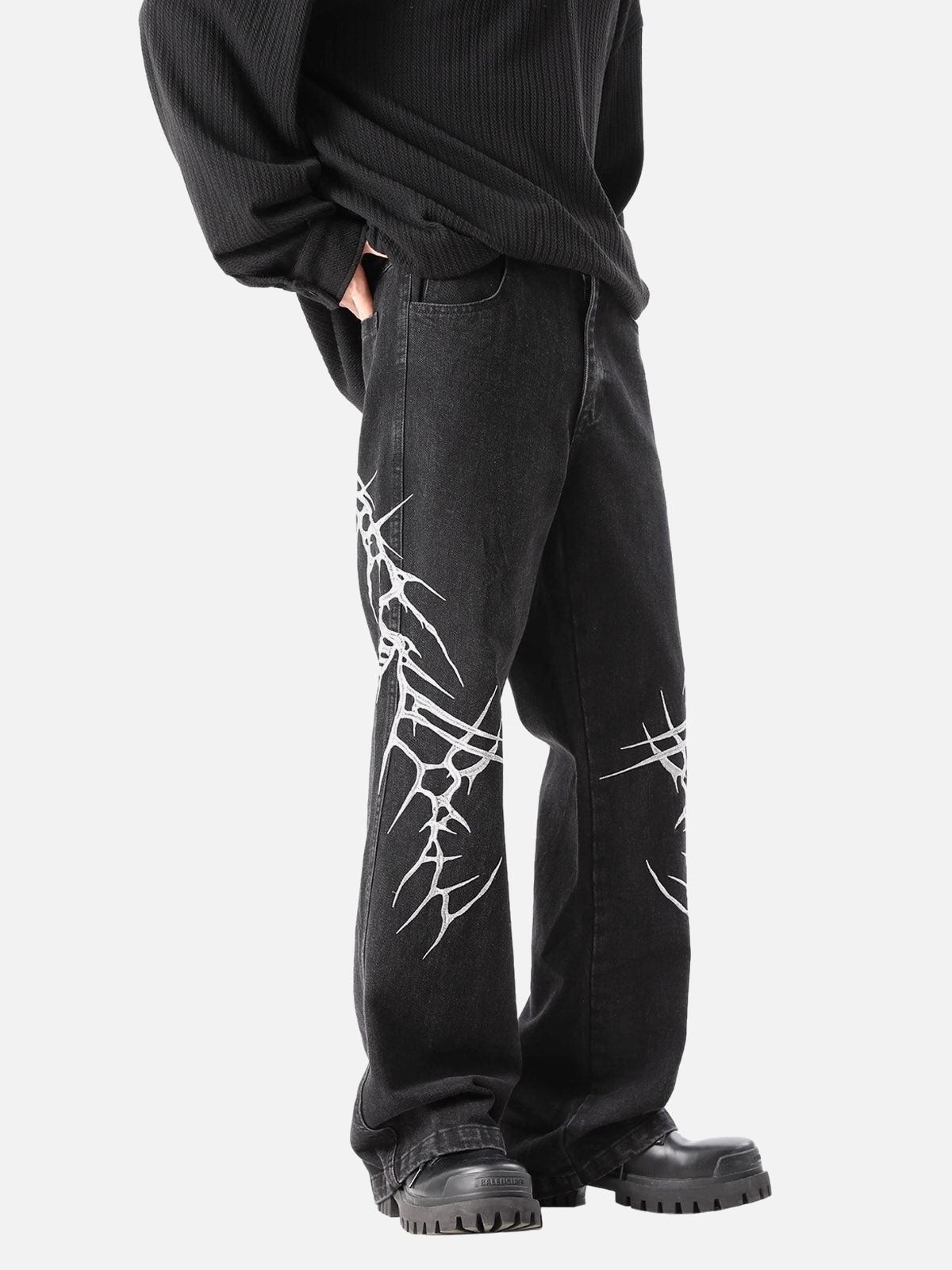 Stylish Concert Outfit: Graphic Embroidered Straight Jeans for Events