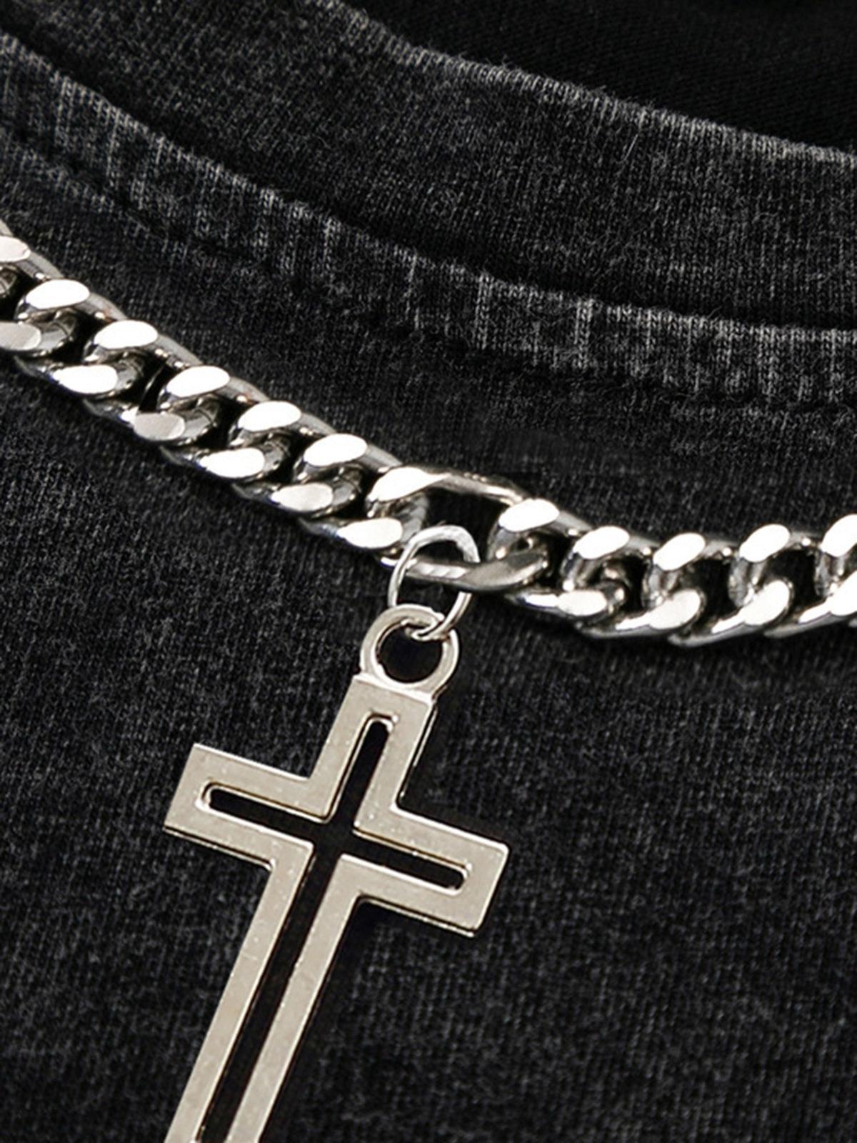 Unleash your inner rebel with this edgy black tank, featuring a bold graphic that demands attention and a distressed hem that screams urban cool. The rugged texture and chain detail add layers of intrigue, making it perfect for those who live for streetwear fashion that turns heads. Available in sizes from S to XL, this piece offers a relaxed fit that pairs effortlessly with your favorite ripped jeans or layered under a sharp jacket. Embrace your fearless side and redefine your look with an attitude that won’t be ignored.