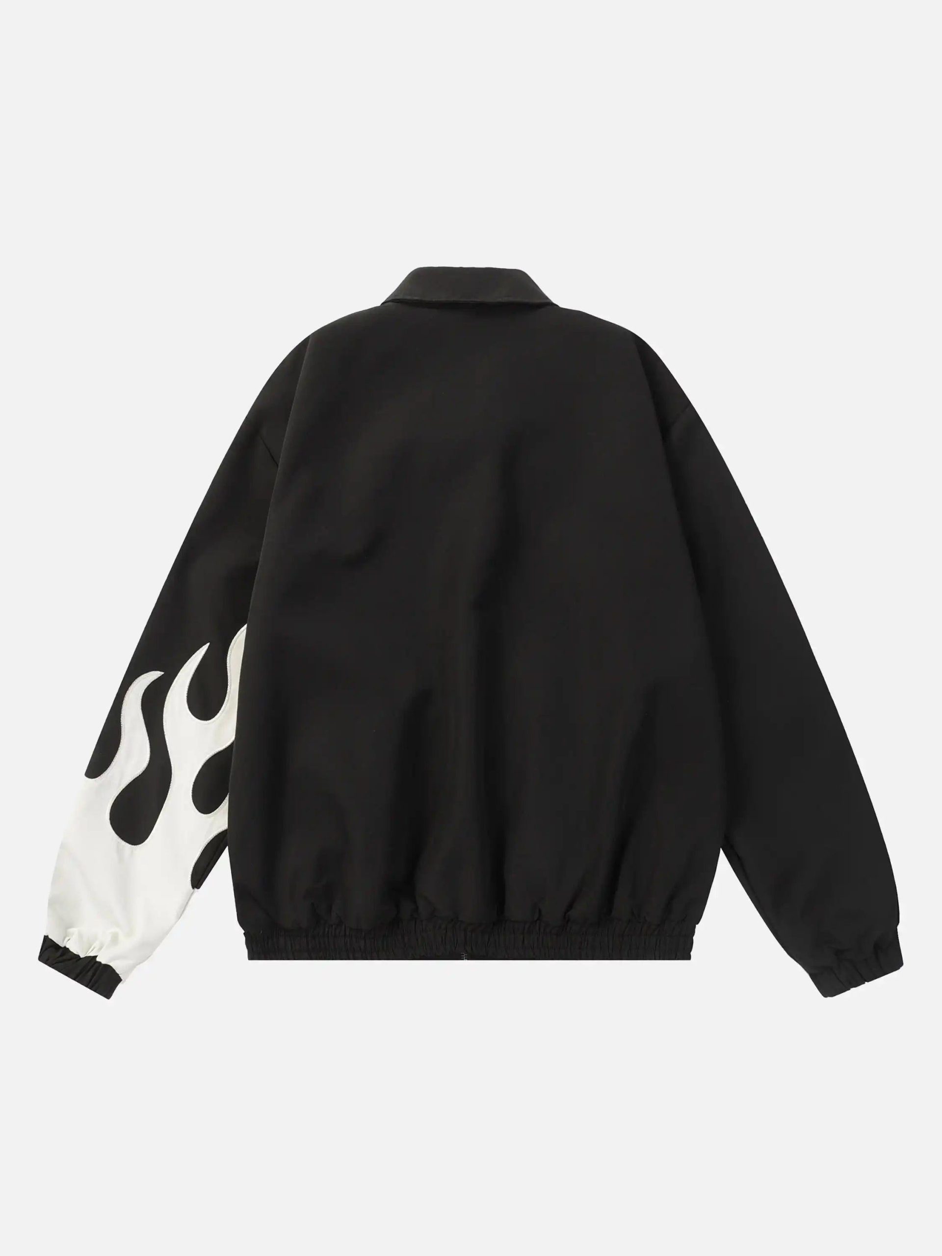 Ignite your style with this fierce red jacket, where bold black flame graphics blaze across the front, capturing the essence of urban streetwear fashion. Its smooth, durable texture ensures comfort while making a bold statement, whether you’re rocking it on city streets or at a weekend hangout. Available in versatile sizes from M to XL, this piece caters to those who dare to stand out, with red, black, and beige options that seamlessly fit any wardrobe. Pair it with your favorite kicks for instant outfit inspo that turns heads. Own the moment and let your look speak volumes.