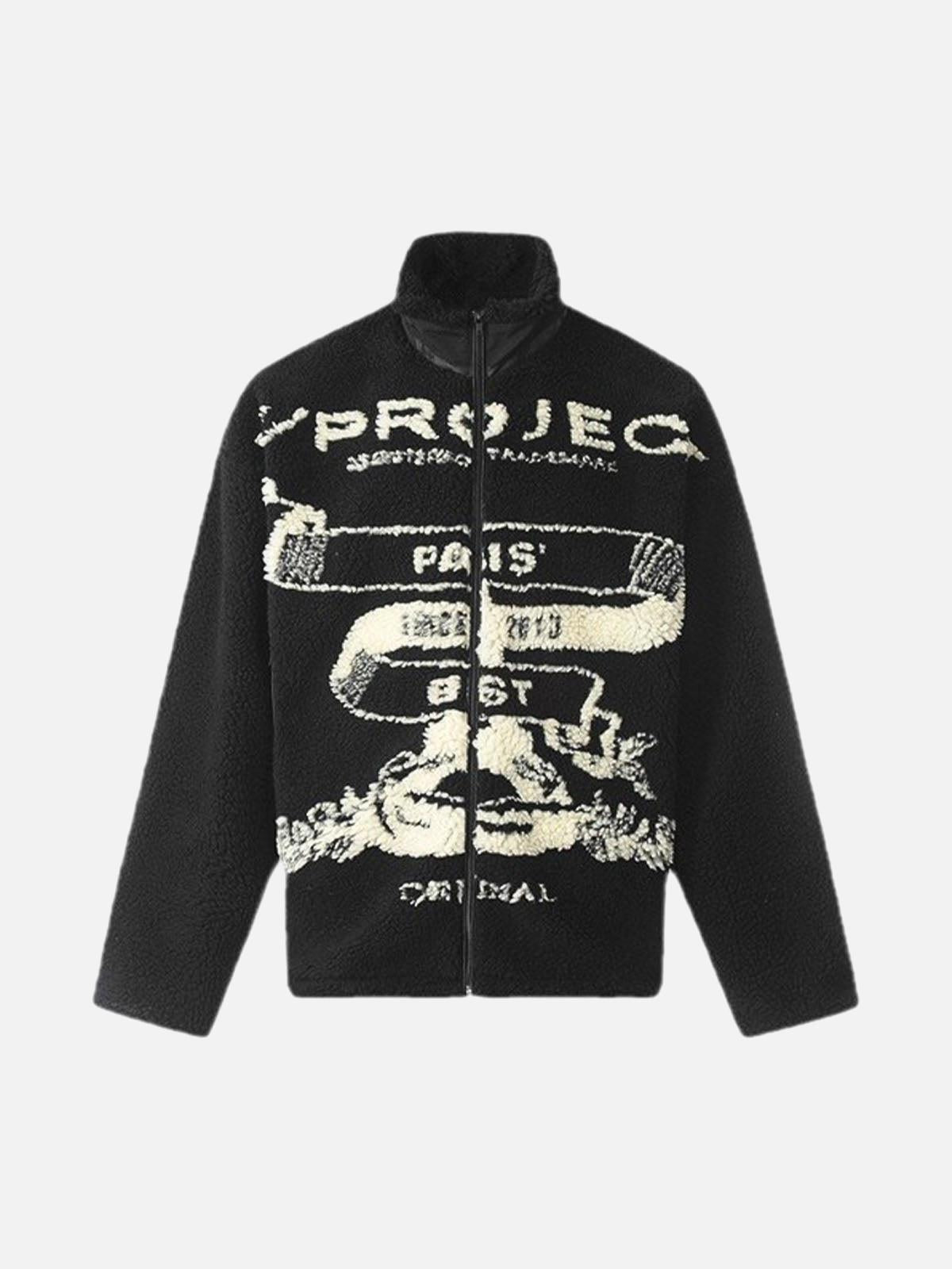 Turn heads with this striking zip-up, where bold graphics meet the plush embrace of textured fleece. The deep black hue sets the stage for standout cream designs, making it a perfect fit for those who crave a blend of comfort and y2k streetwear fashion. Available in versatile sizes — M, L, and XL — this jacket is tailored for a relaxed fit that layers effortlessly over your favorite urban ensemble. Whether you’re hitting the city streets or chilling with friends, this piece is your go-to for effortless style and warmth. Embrace the vibe and make it yours today.