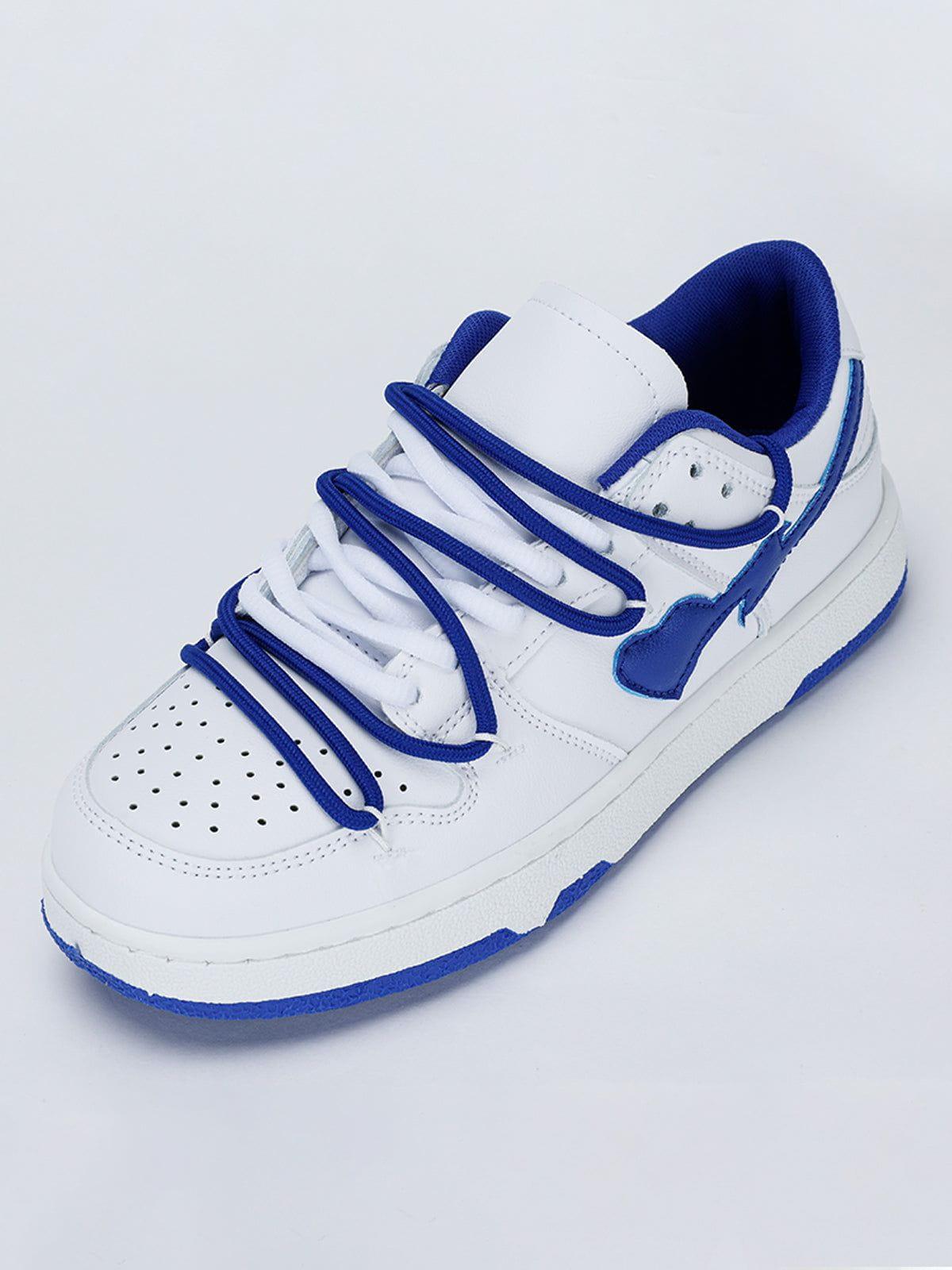 Stride into the future of streetwear fashion with these bold sneakers that blend dynamic design and urban flair. The crisp white leather is sharply contrasted by electric blue accents and a striking heart and lightning motif, giving your look an edgy, contemporary vibe. Available in sizes 36 through 44, these kicks deliver a snug, comfortable fit, perfect for those who value both style and substance. Pair them effortlessly with your favorite Y2K outfits for a look that’s both nostalgic and ahead of the curve. Step up your sneaker game and make these your go-to for standout outfit inspo.